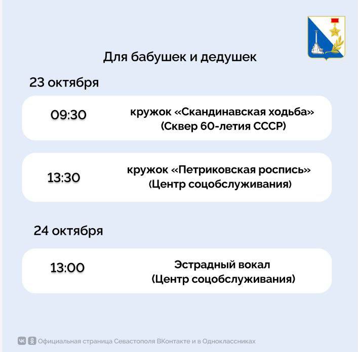 Специалисты Севастопольского центра социального обслуживания подготовили бесплатные мероприятия на следующую неделю.
