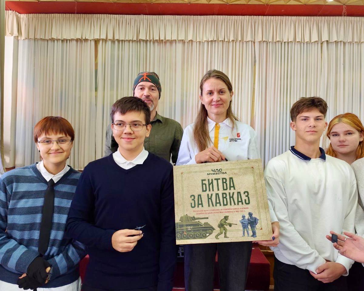 В школе №61 состоялось по-настоящему необычное и захватывающее событие — историко-патриотическая настольная игра «Час Мужества. Битва за Кавказ», проведённая в рамках Всероссийского проекта по приглашению Навигатора Детства Ольги Новичковой.