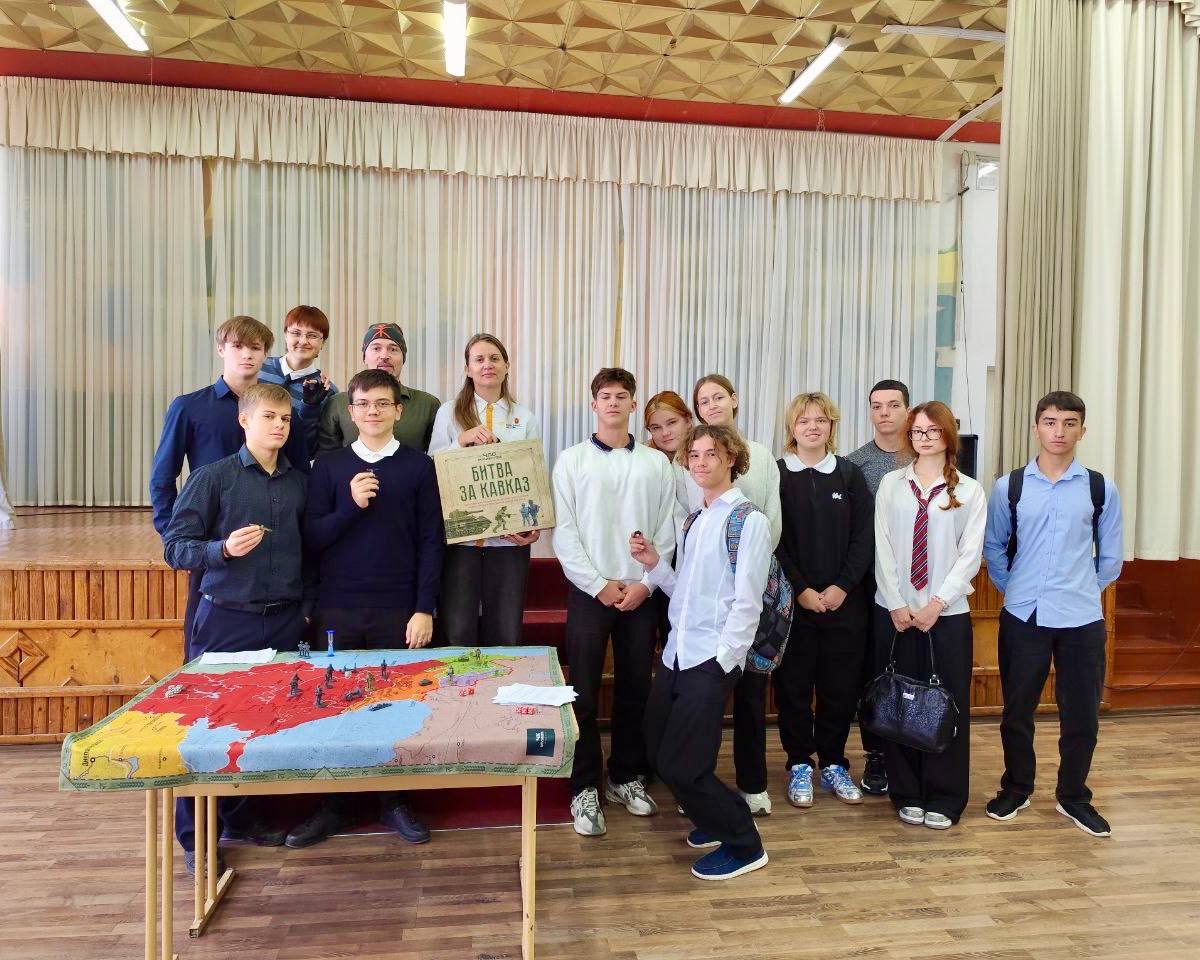 Более 100 учеников 8–11 классов стали участниками уникального исторического эксперимента: на несколько часов школьники перенеслись в суровые годы Великой Отечественной войны, чтобы в формате настольной стратегии воссоздать реальные сражения за Северный Кавказ и Кубань, происходившие в 1942–1943 годах.