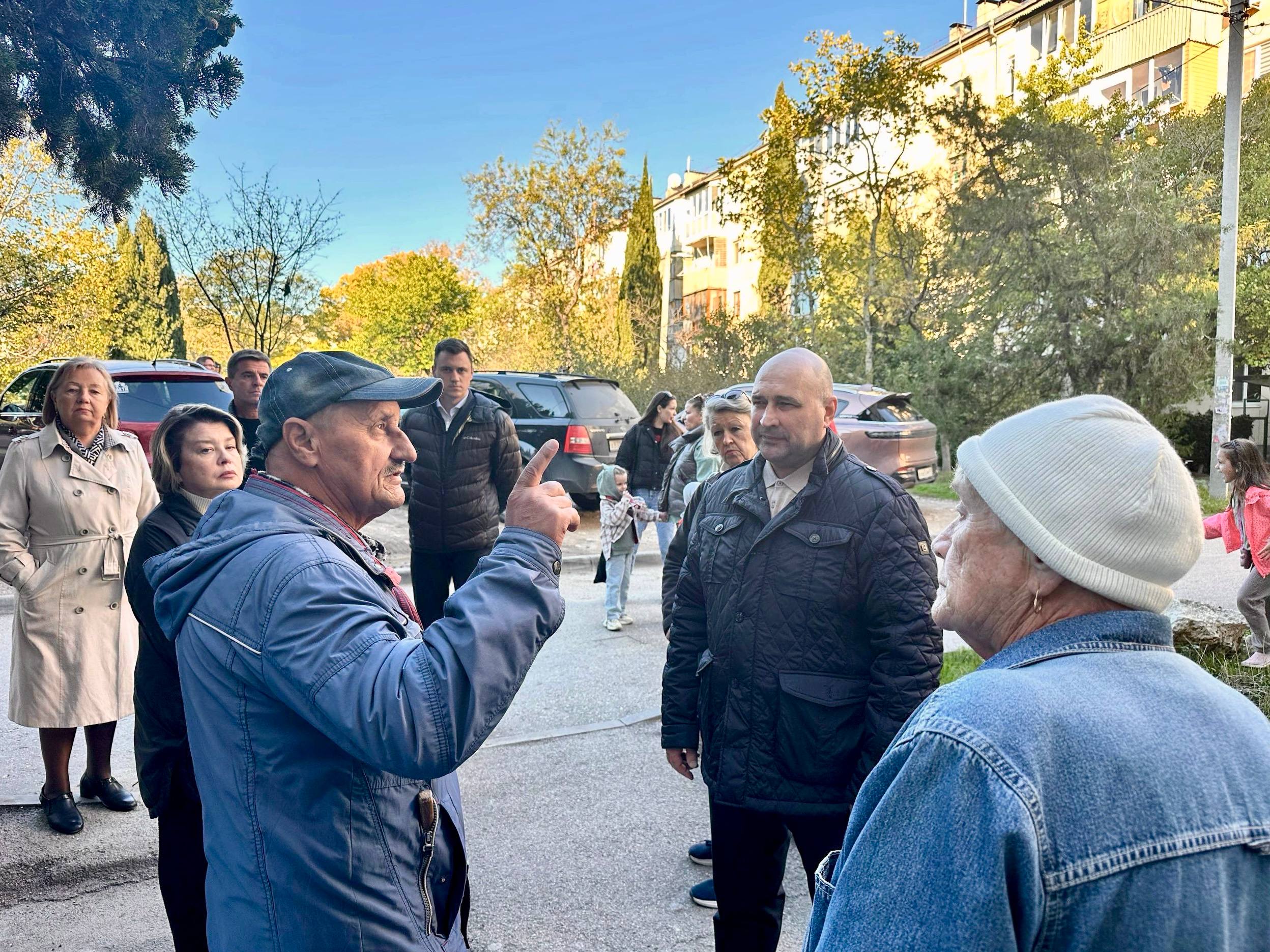 Встретились с жителями домов №№32 и 34 на улице Репина, чтобы обсудить результаты текущего ремонта подъездов и благоустройства спортивной площадки в районе дома №30.