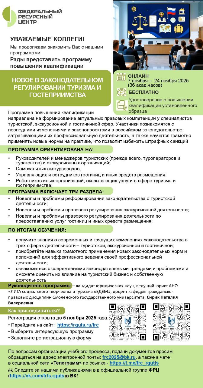 Т акже, Центр развития кадрового потенциала туристической отрасли на базе Поволжского ГУФКСиТ предлагает программы повышения квалификации: