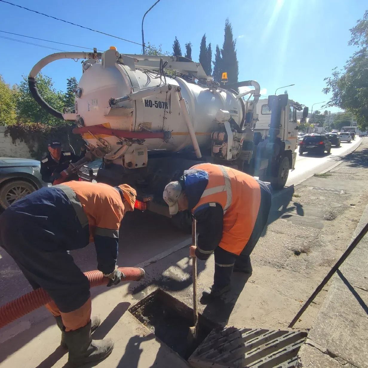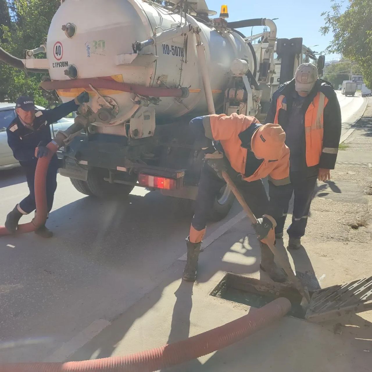 Бригада Николая Ерёмина прочистила и промыла спецтехникой сети ливневой канализации на ул.Курганная, ул.Шмидта, ул.Новикова