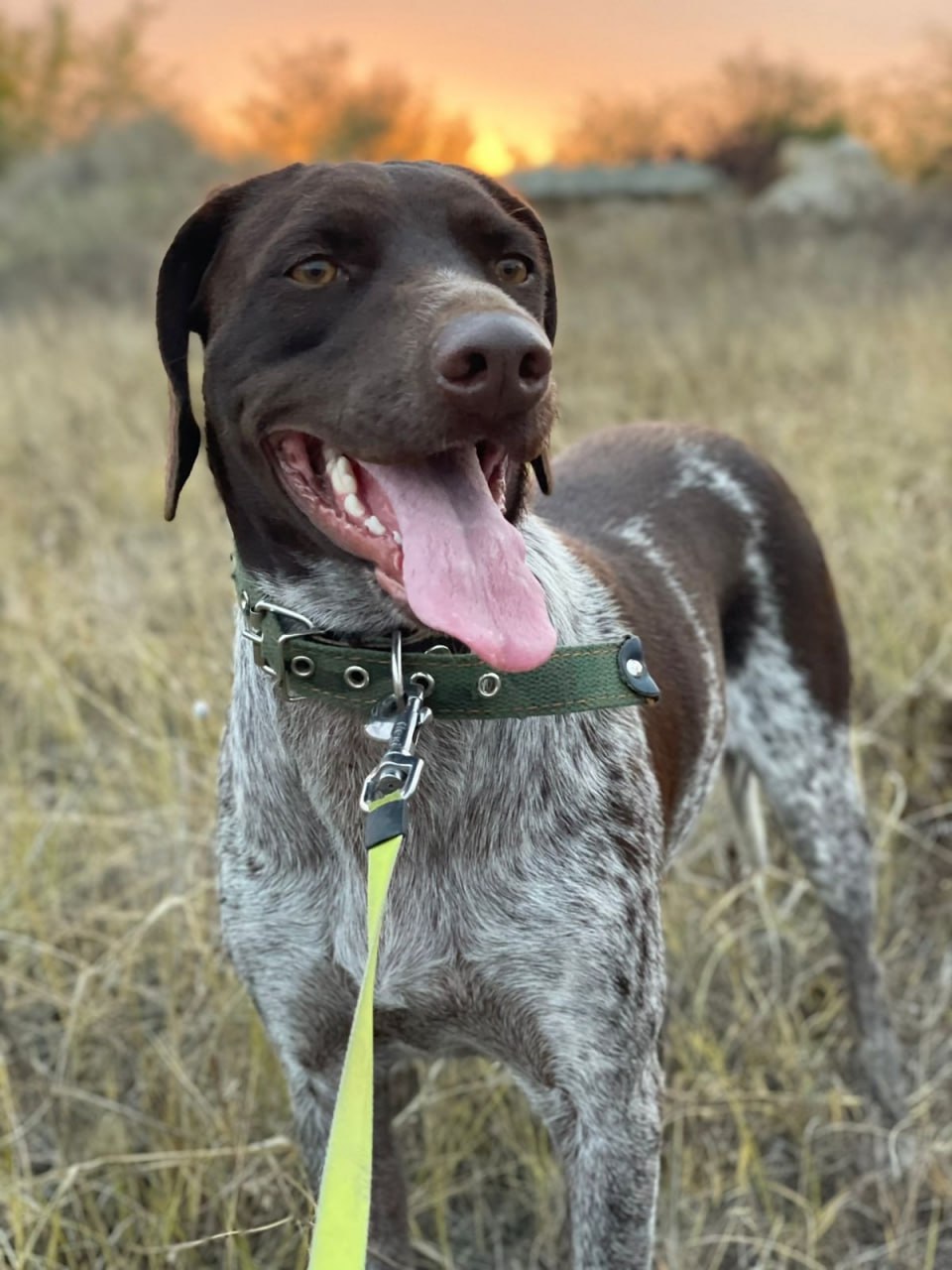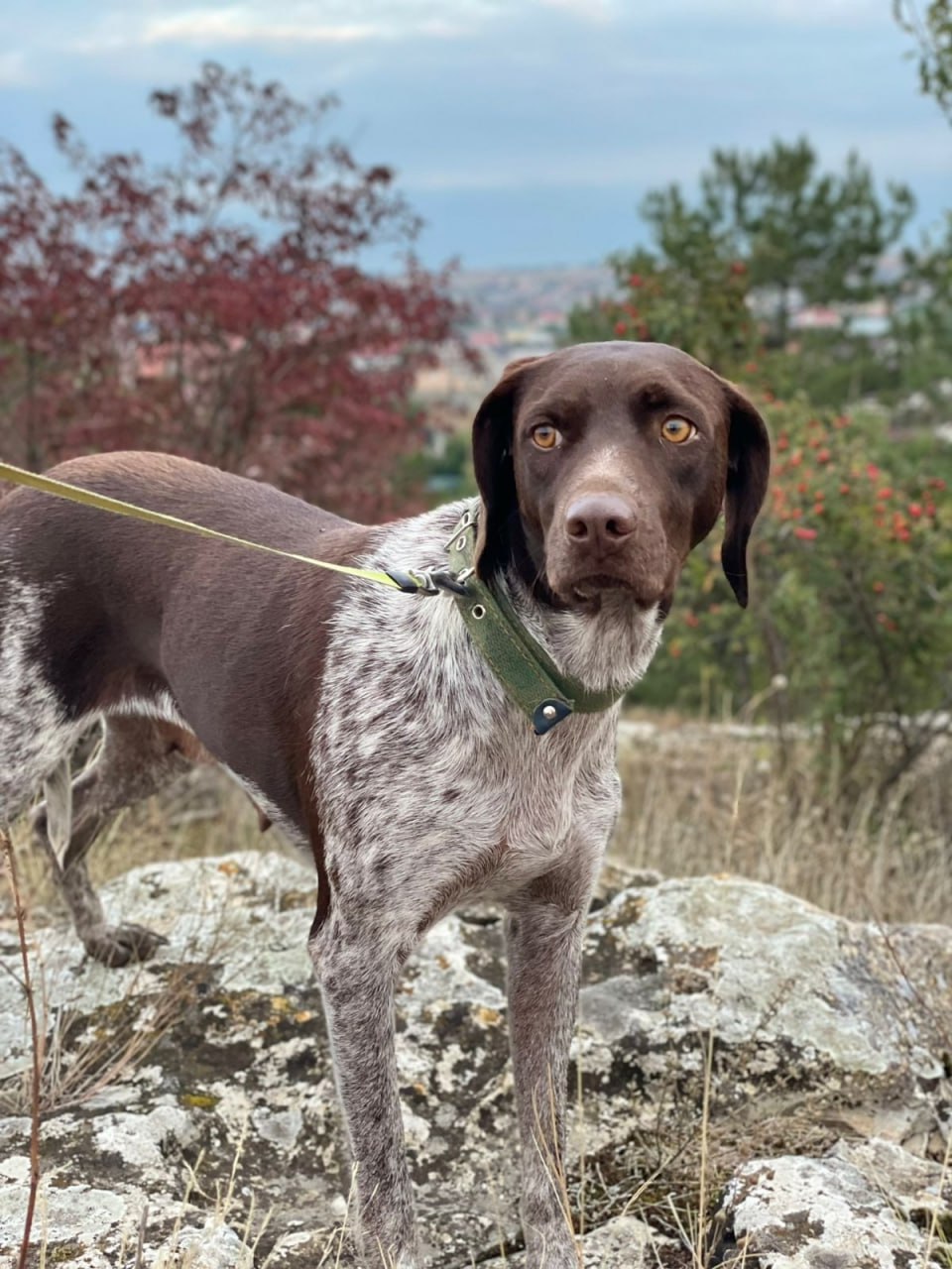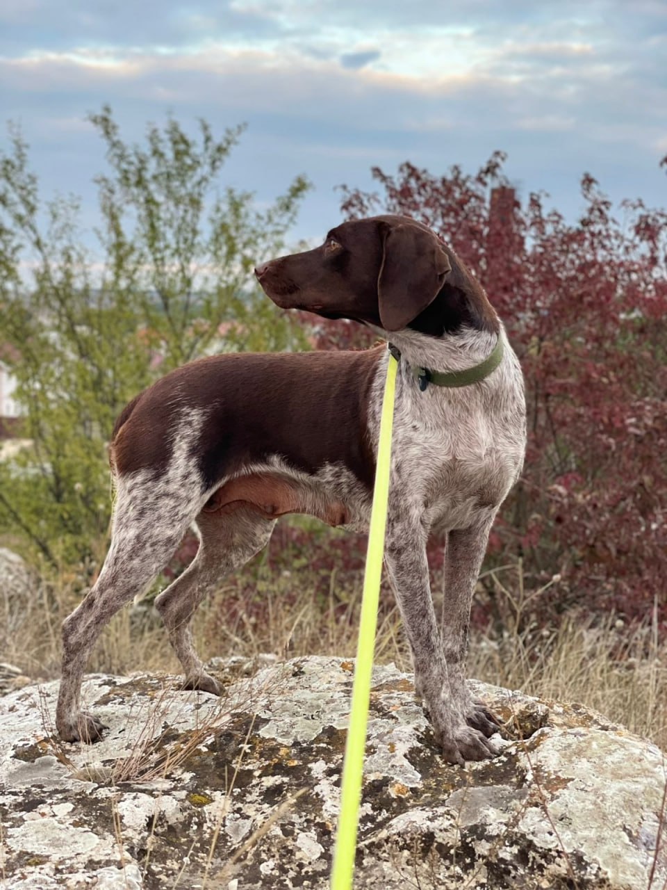Курцхаар Жозефина, будучи щенком, прибилась к военному лагерю и прожила там полтора года. За это время у неё появились малыши.