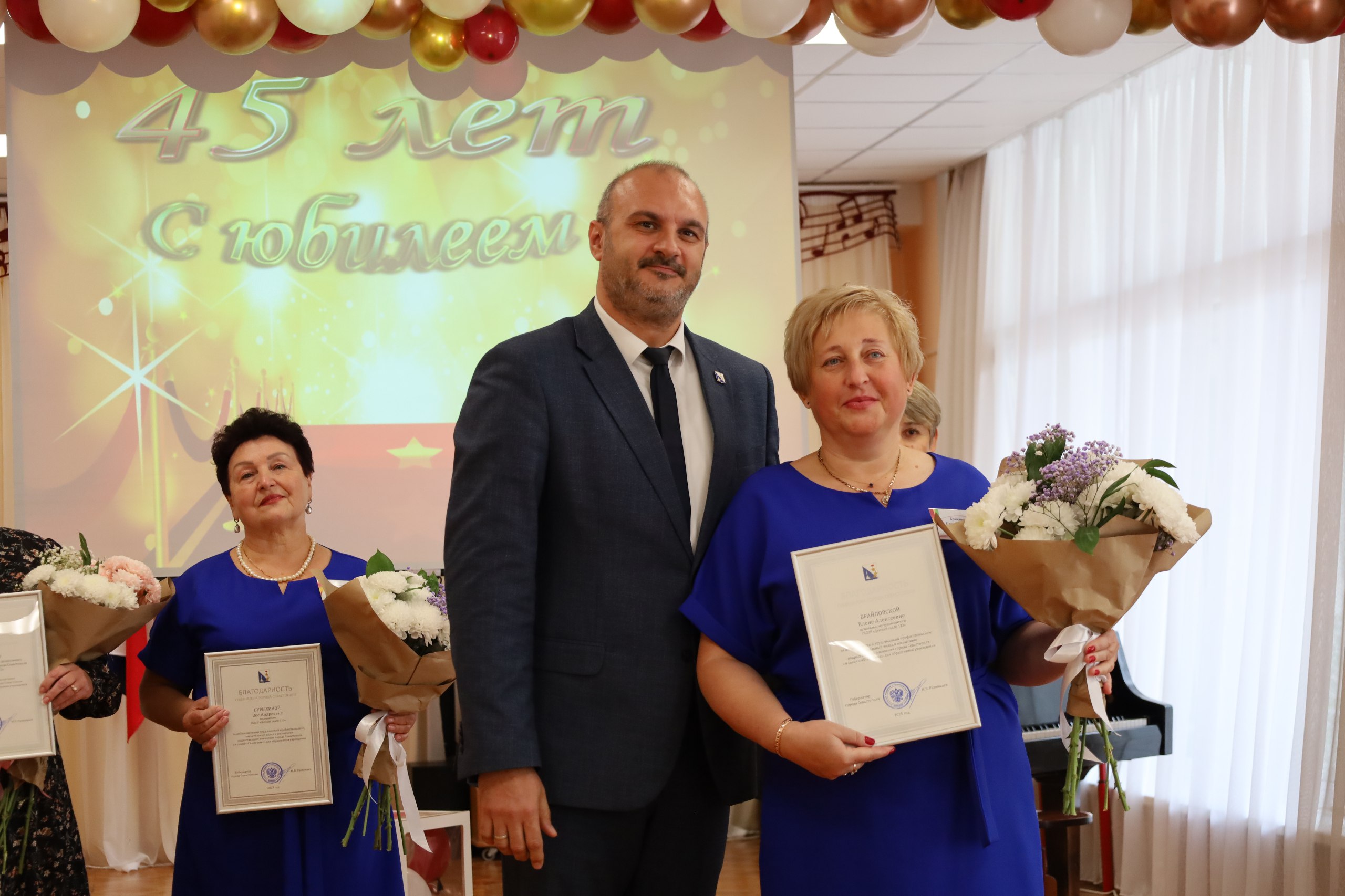 От имени Губернатора Севастополя Михаила Владимировича Развожаева вручил работникам детского сада Почетные грамоты Правительства и Благодарности Губернатора, также вручил награды Департамента образования и науки.