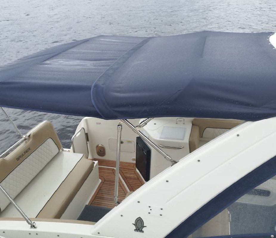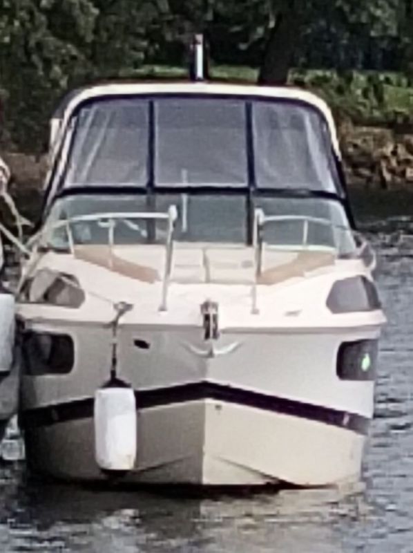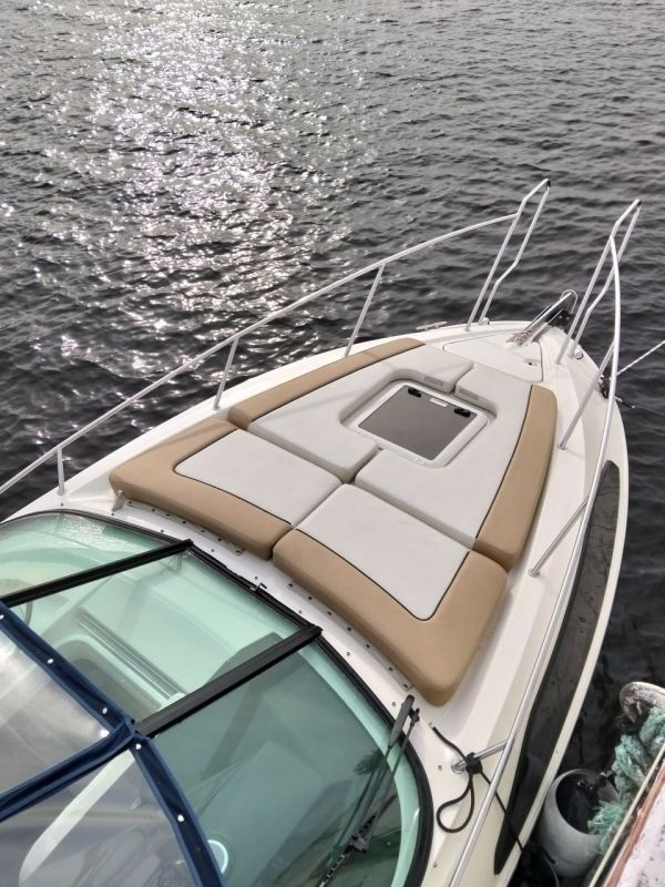 Катер имеет носовое подруливающее устройство и управляется гидравлической рулевой колонкой. В рубке катера имеется: 4 спальных места, стационарный гальюн, совмещенный с душем, 2 встроенных холодильника (Один в каюте, второй в кокпите. Ну надо же пить охлажденный виски, не выходя из кокпита), 2 раковины (одна в каюте, вторая в кокпите). Над каютой смонтированы мягкие маты для загорания. Короче всё буржуи продумали, кроме одного…
