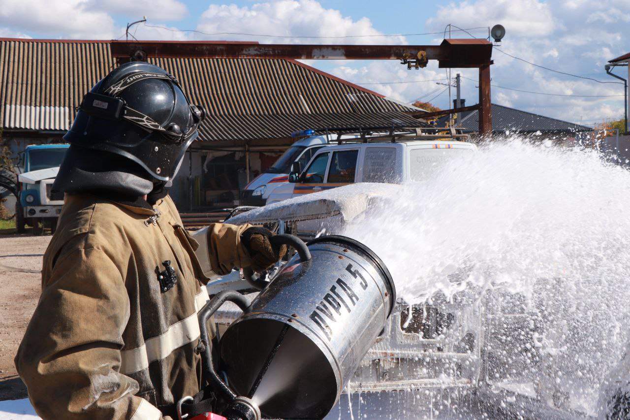 По легенде учений произошло столкновение двух легковых автомобилей: в одном из них оказался заблокирован пострадавший, а из второго произошла утечка топлива, что привело к возгоранию.