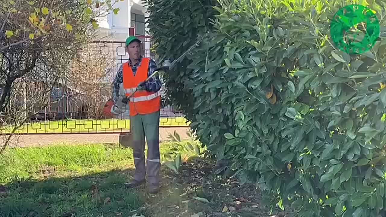 Выполнили стрижку живой изгороди, прополку кустарников и розария.