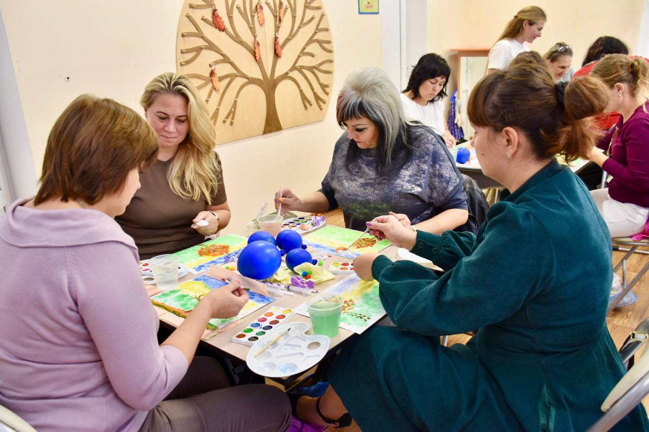 Арт-терапия для семей участников СВО. На этой секции специалисты познакомились с целым набором мягких и эффективных технологий: осваивали нетрадиционные методы (рисование, лепка, аппликация в одной картине), которые помогают выразить сложные эмоции и улучшить отношения в семье. Участники учились использовать трансформационные игры для работы с подростками и родителями. Эти игры — мощный инструмент для налаживания диалога и взаимопонимания. А также открыли для себя песочную терапию и мотивационные игры с манкой — бережные методы для развития эмоциональной сферы и мотивации как у детей, так и у взрослых.