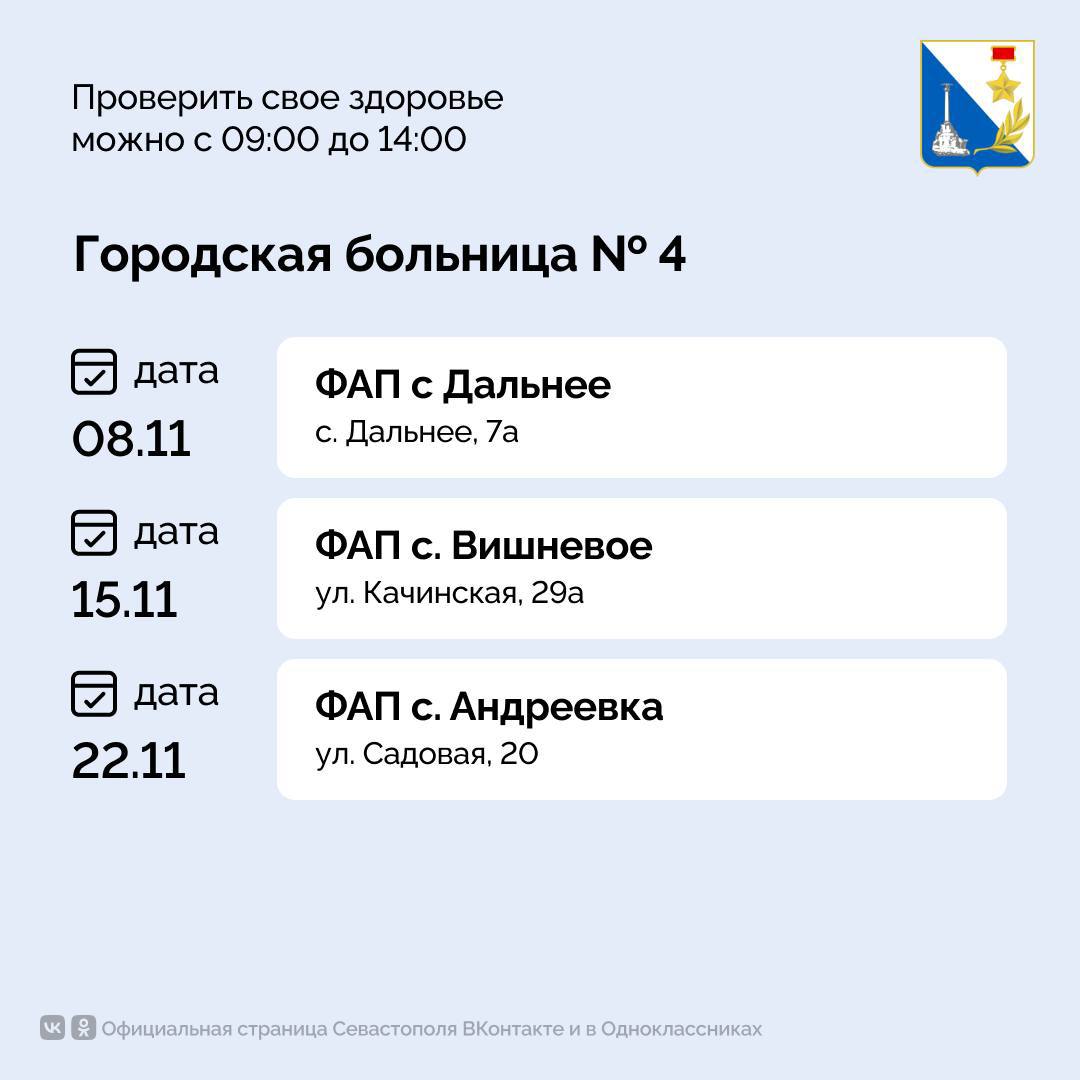 Правительство Севастополя информирует о Днях здоровья в ноябре.