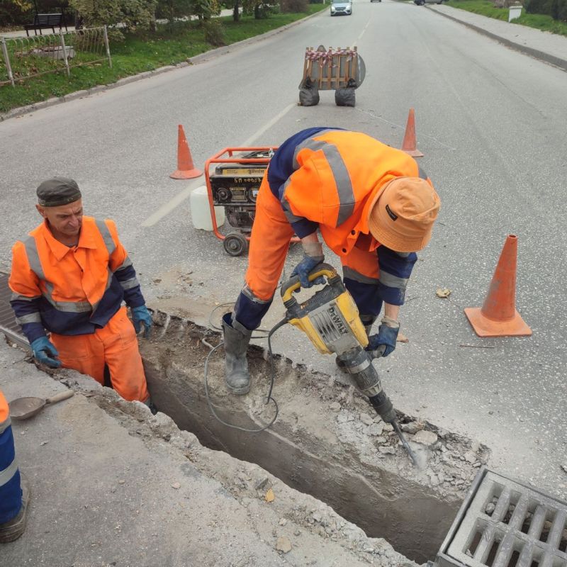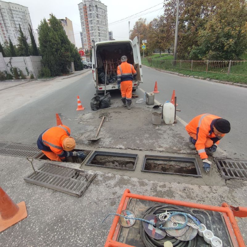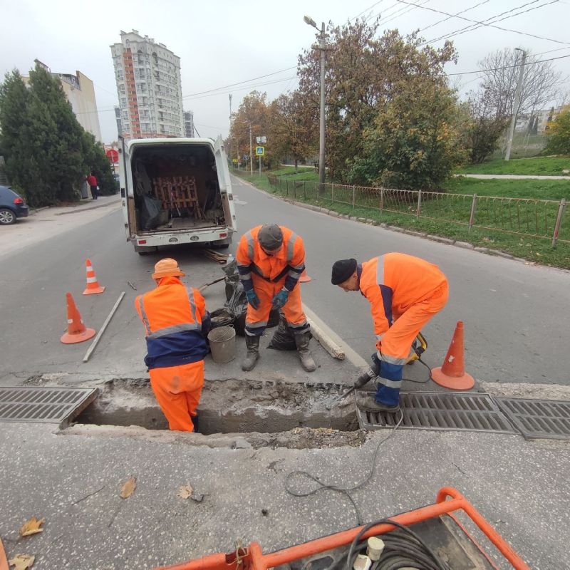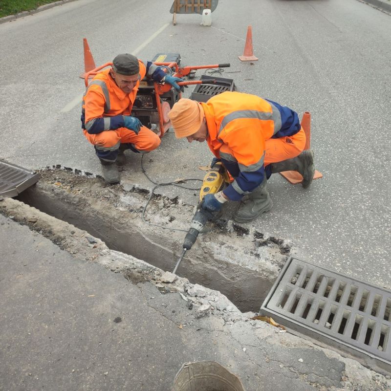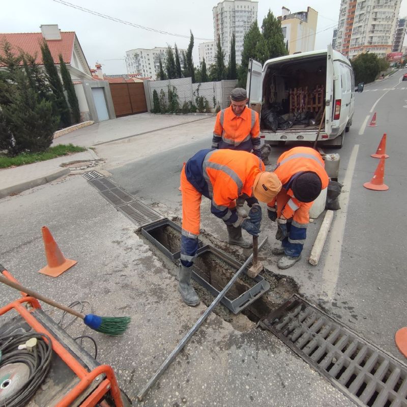 Водоканал: Рабочие моменты. Замена ливневых решеток на ул.Степаняна Фото Николая Ерёмин