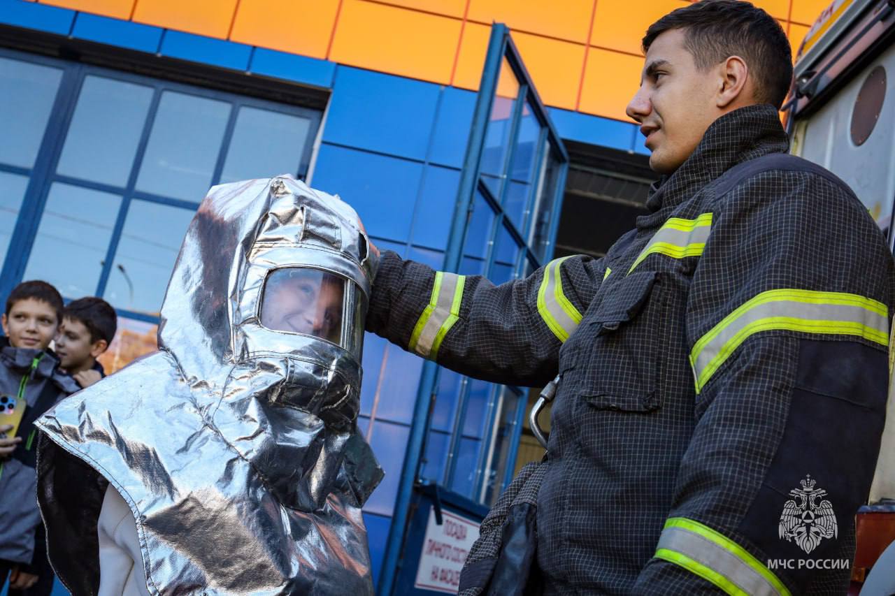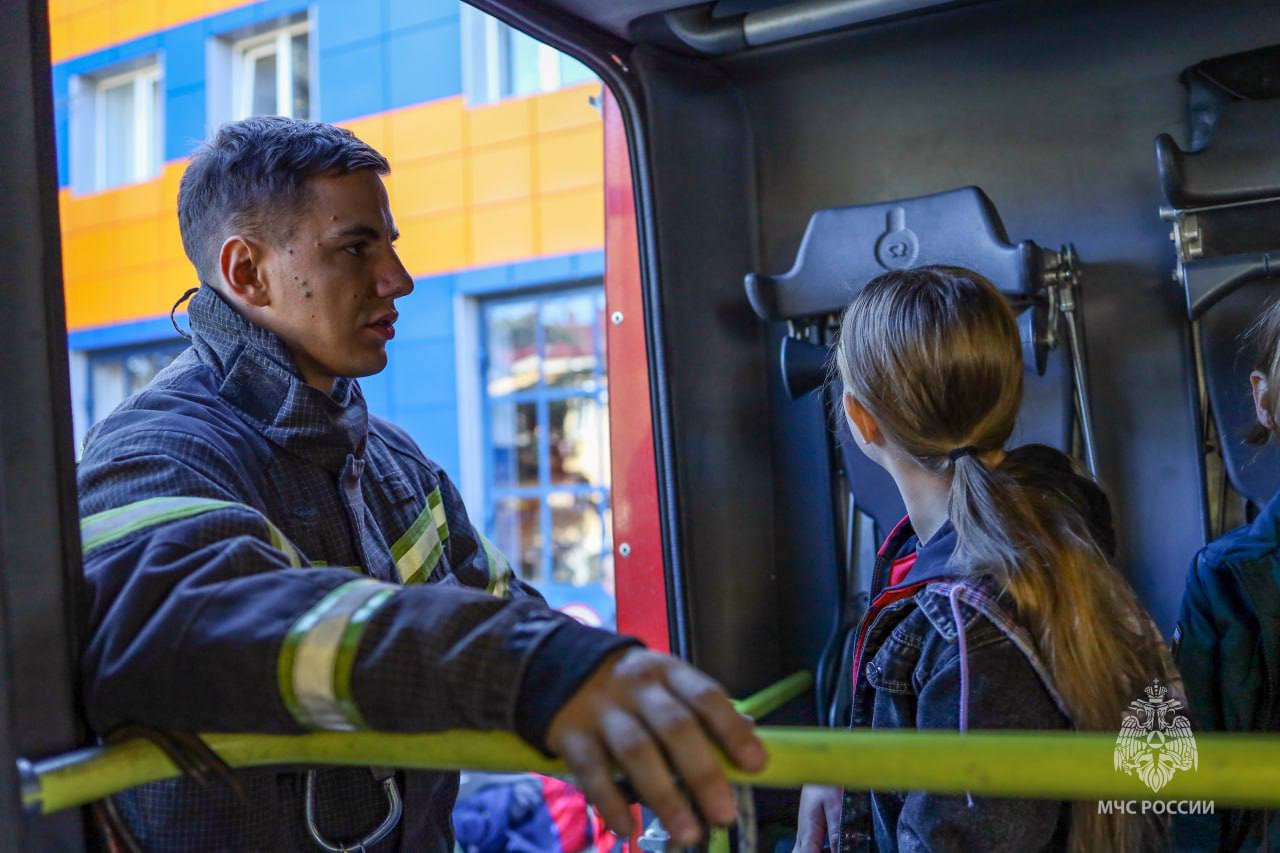 В пожарной части №1 МЧС России школьники 5 класса познакомились с пожарной техникой и оборудованием, примерили экипировку огнеборцев и узнали, что делать в случае пожара.