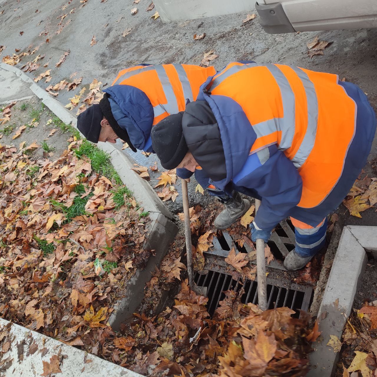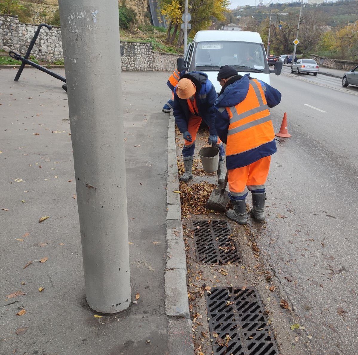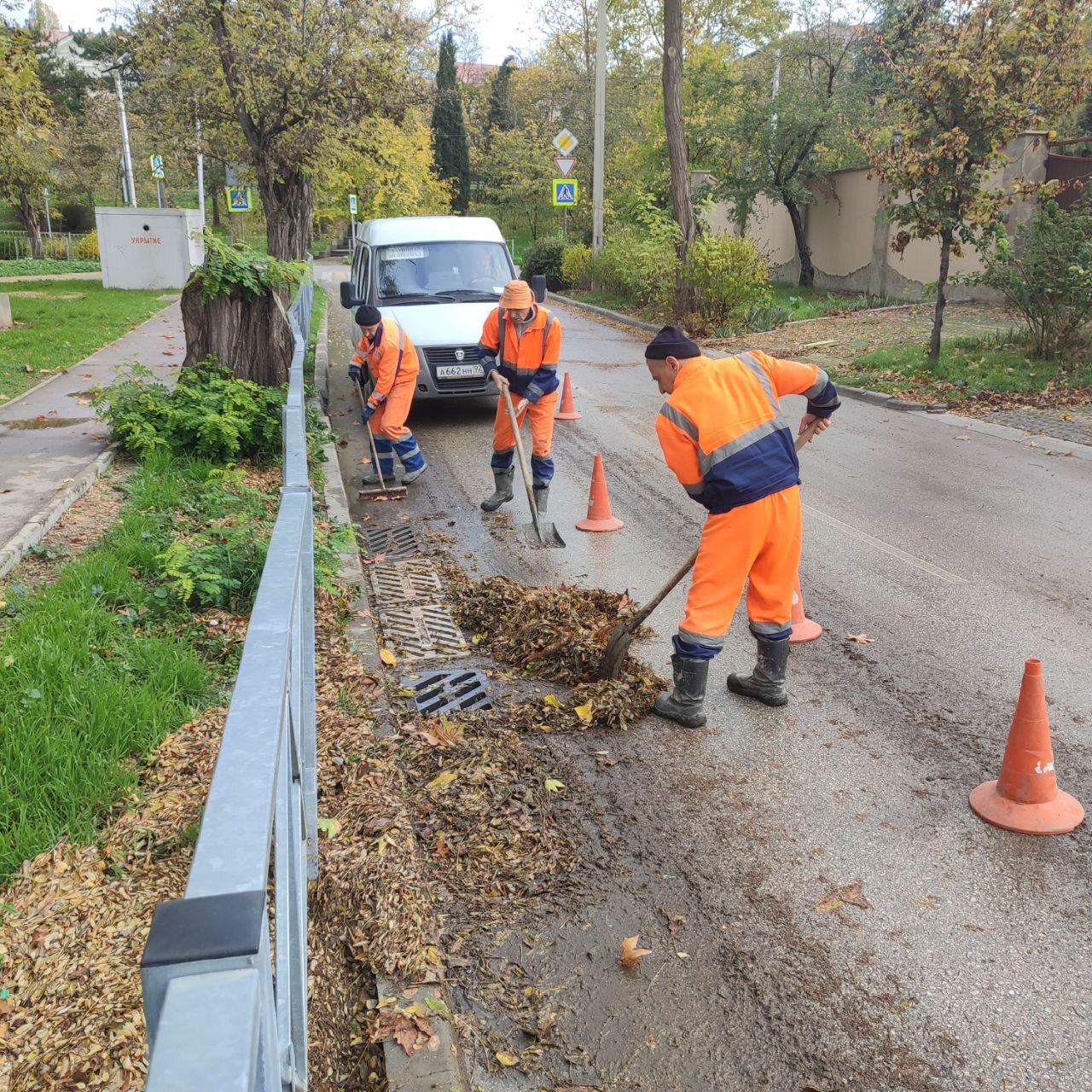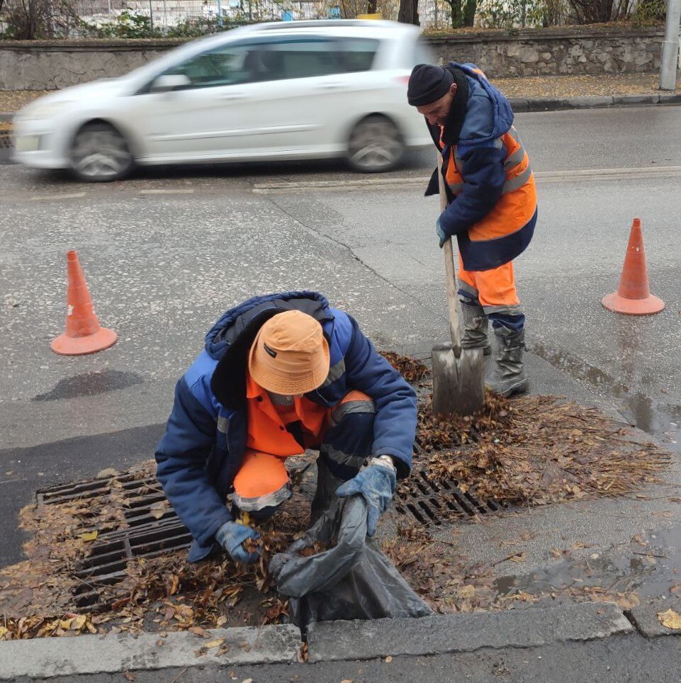 Водоканал: Рабочие моменты. Удаляем нанесенную на ливневые решетки листву Фото Николая Ерёмина; работали на ул.Вокзальной, ул.Ревякина, ул.3-я Бастионной, ул.Генерала Родионова, ул.Дзигунского, ул.Героев Севастополя, ПОР,ул