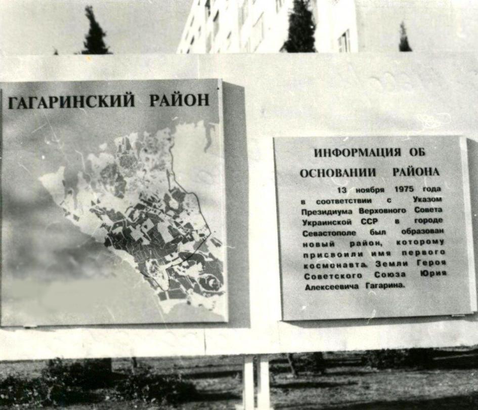13 ноября 1975 года в соответствии с Указом Президиума Верховного Совета УССР был образован Гагаринский район города Севастополя, который получил свое название в честь первого космонавта Юрия Гагарина.