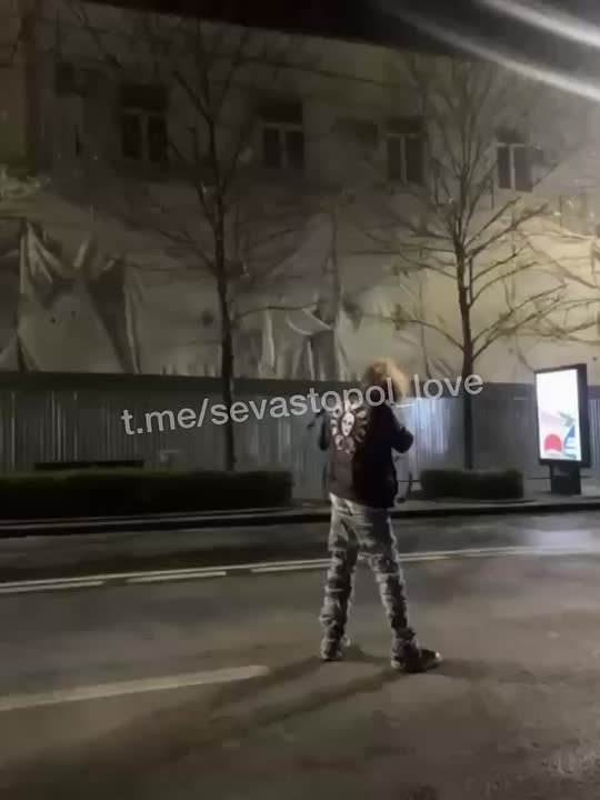 На появившихся в соцсетях кадрах неизвестный мужчина в центре Севастополя стреляет из арбалета в сторону здания, а также направляет оружие на другого человека.