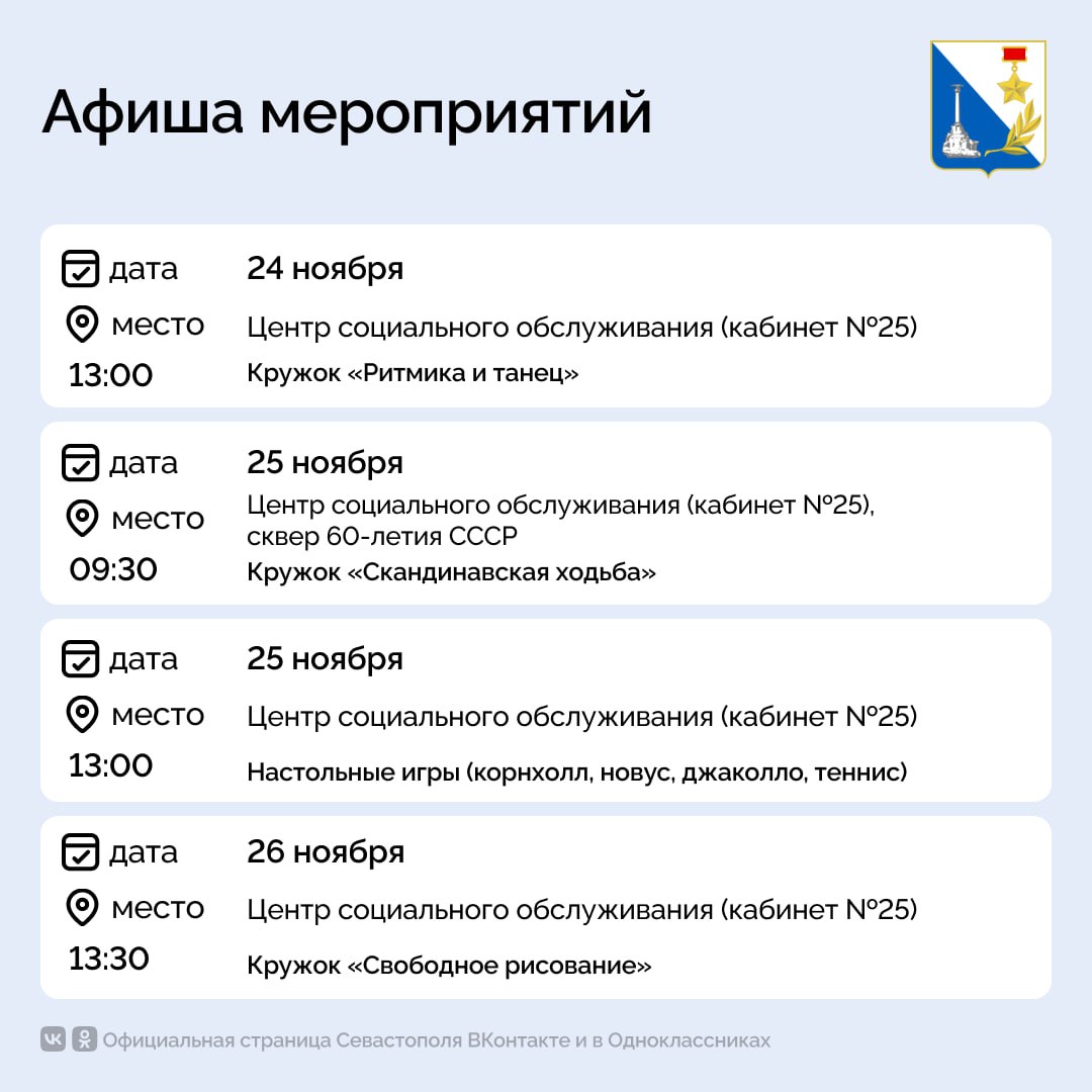 Расписание — в карточках Правительства Севастополя.