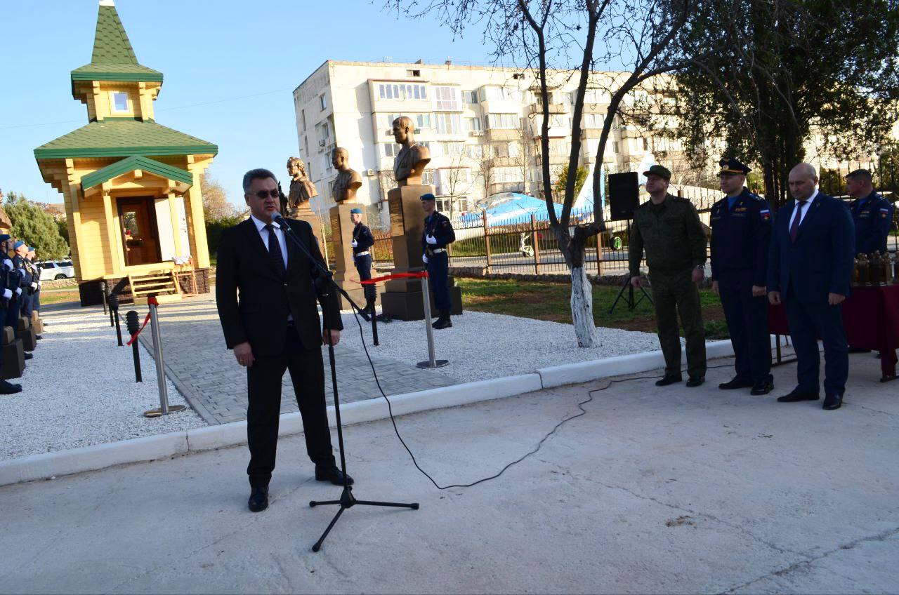 В рамках церемонии также открыл бюст генералиссимуса Александра Васильевича Суворова — великого полководца, не проигравшего ни одного сражения, основоположника русской военной теории и непоколебимого патриота Отечества.