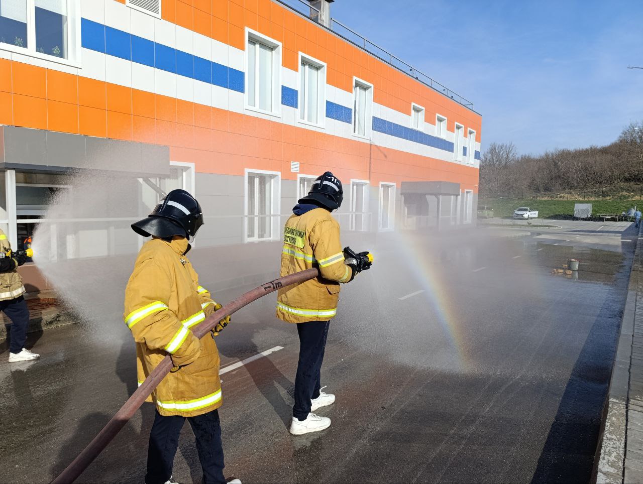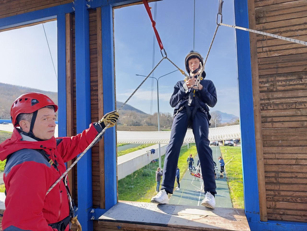 На площадке «Пожарный биатлон» кадеты надевали боевую одежду на скорость, разворачивали рукавные линии и учились управлять водяной струей — в игровой форме они загоняли мяч в ворота, отрабатывая точность и слаженность действий. Организационную поддержку здесь оказали коллеги из регионального отделения Всероссийского добровольного пожарного общества (ВДПО).