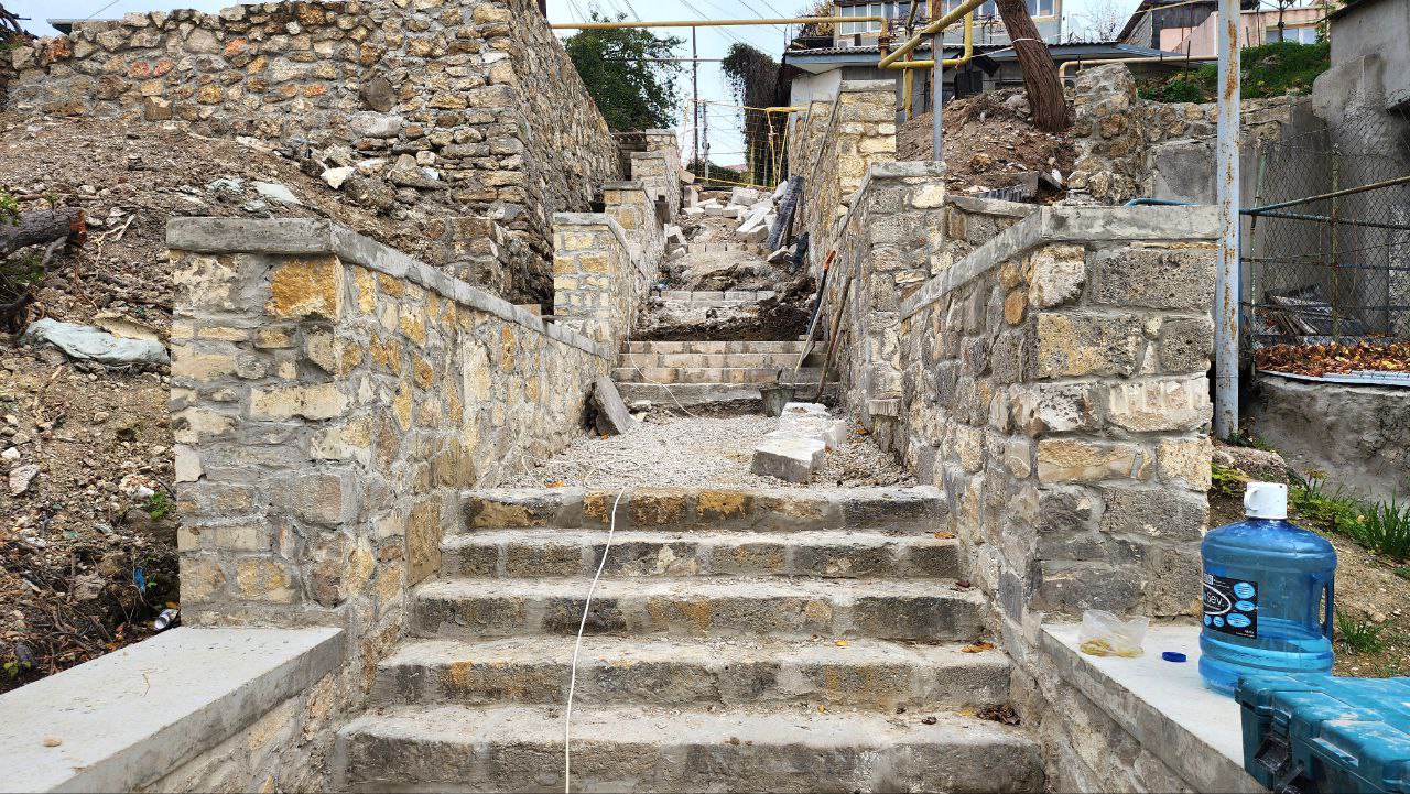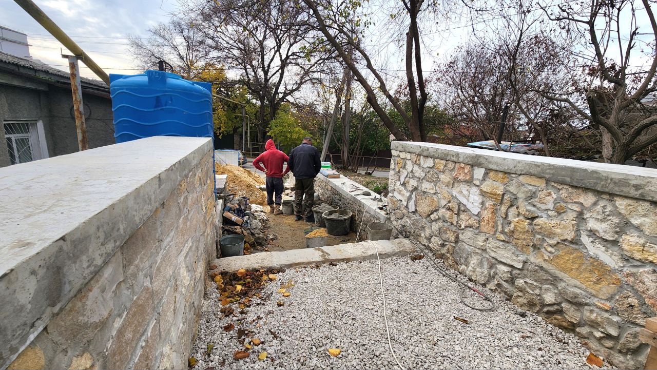 В настоящее время ведутся работы по кладке лестничных площадок и устройству бетонной обоймы для водоотводных лотков.
