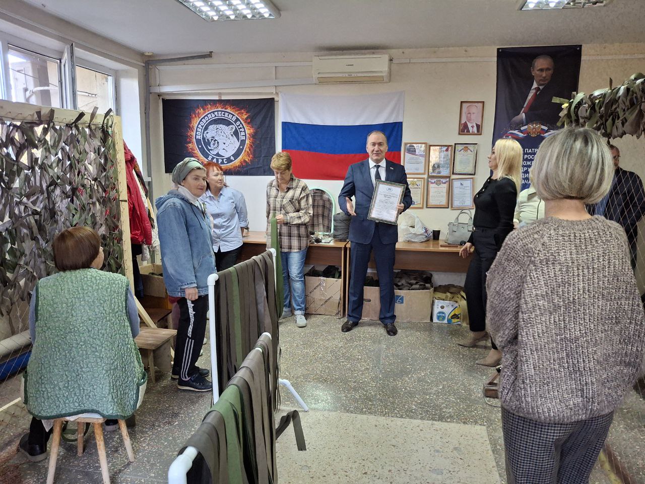Поблагодарил руководителя волонтерской группы Оксану Ивановну Веремьеву и активистов объединения за кропотливый труд и значимый вклад в защиту жизни и здоровья наших бойцов, выполняющих задачи в зоне проведения специальной военной операции.