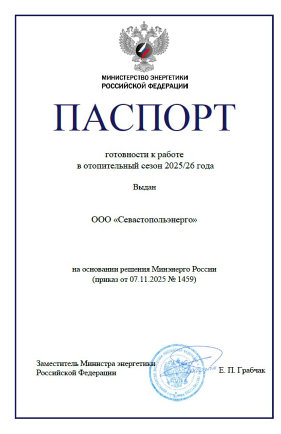 ООО "Севастопольэнерго" успешно завершило подготовку электрических сетей к осенне-зимнему периоду, получив паспорт готовности к работе в отопительный сезон 2025/2026 г.