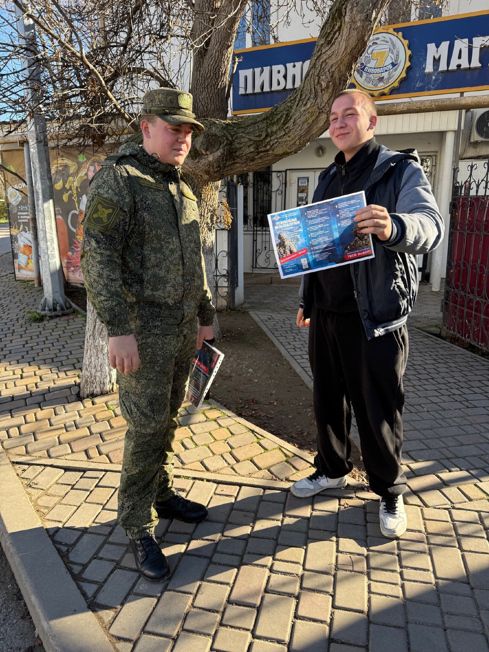05 декабря 2025 проведена информационно-разъяснительная работа с раздачей информационных листовок об условиях и преимуществах службы по контракту в местах общего пользования.