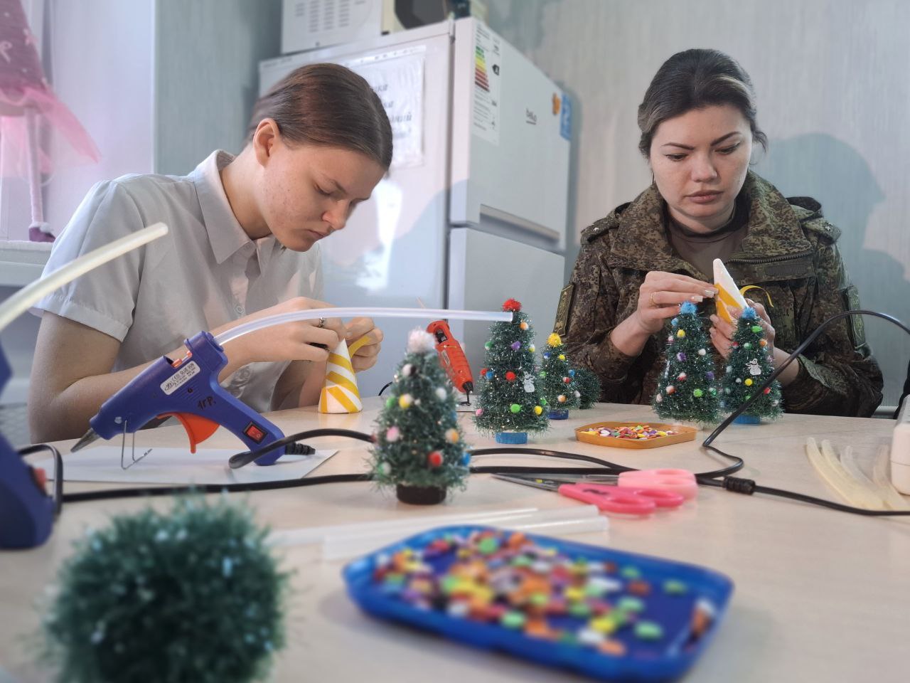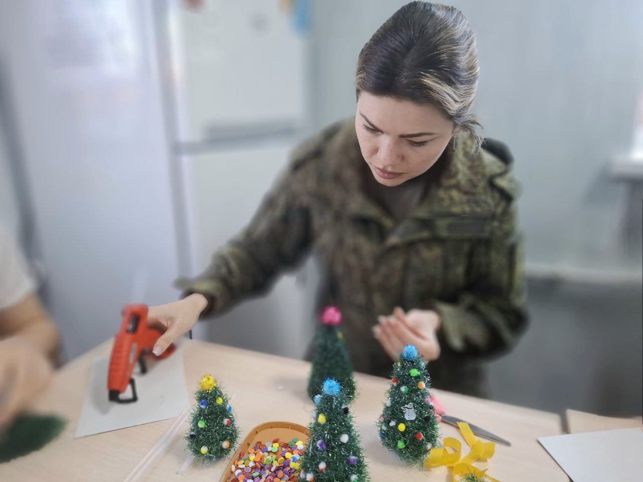 В этот раз вместе с участниками программы "Севастополь — город Героев" ребята мастерили настольные ёлочки для защитников. Дети задавали вопросы о жизни на фронте, дружбе и поддержке, а участники специальной военной операции делились своими историями.