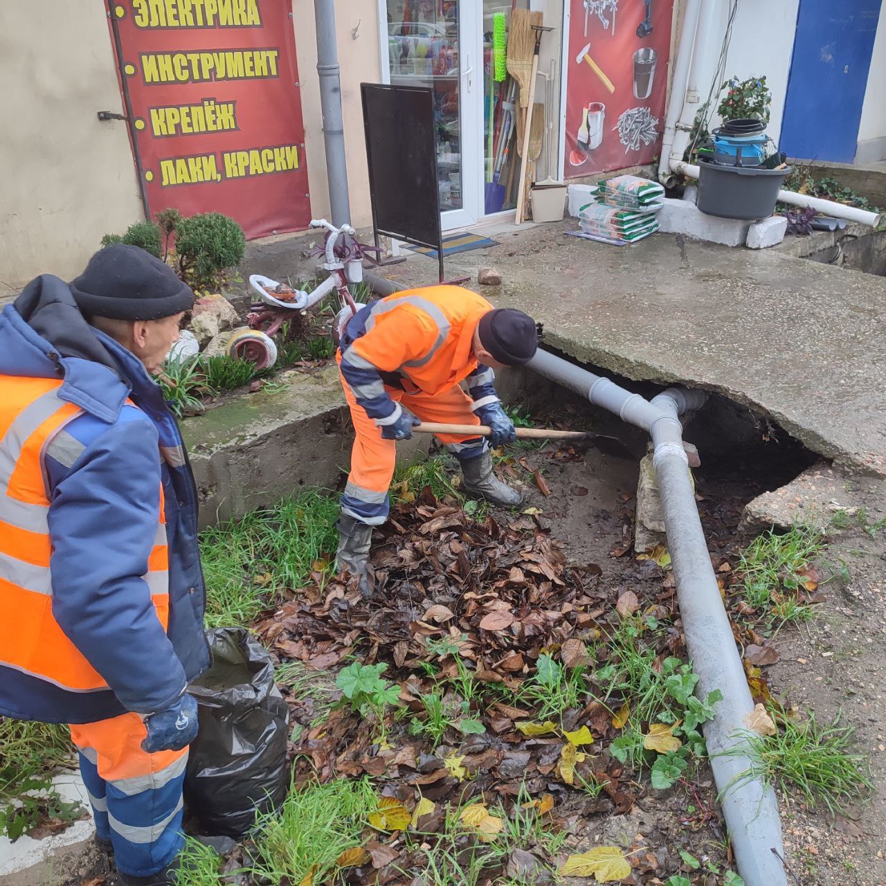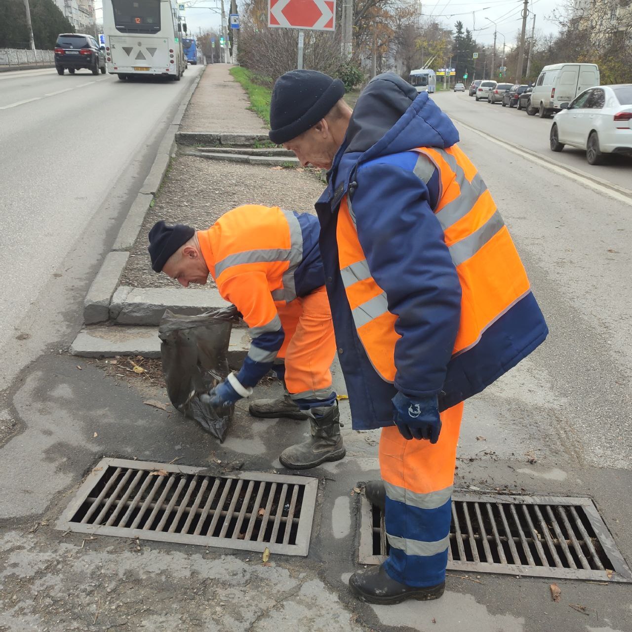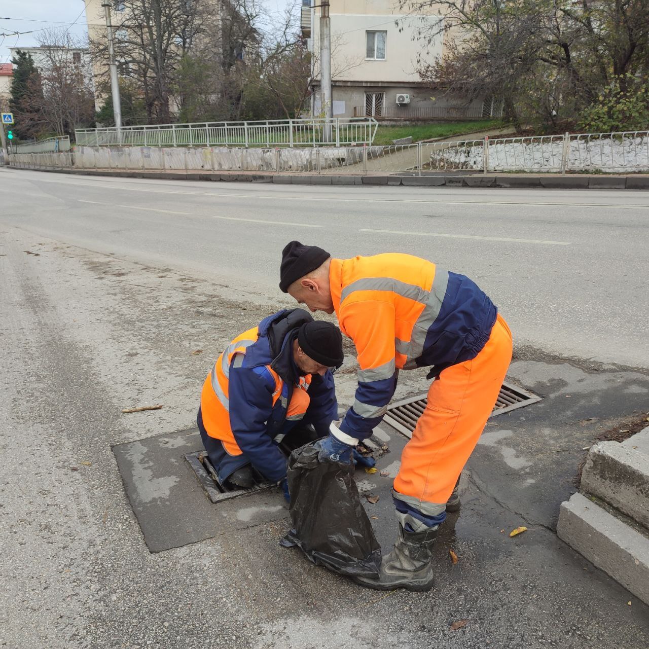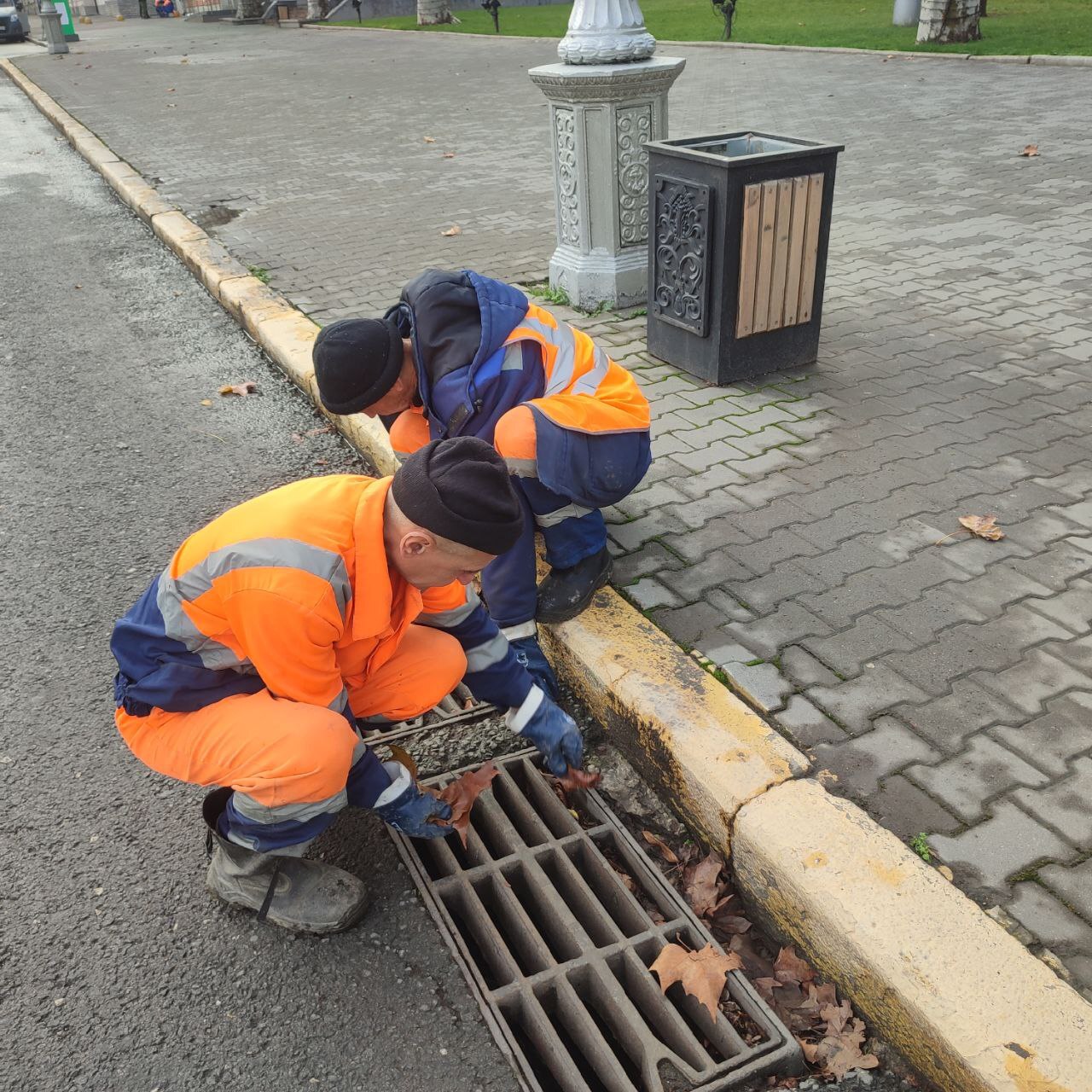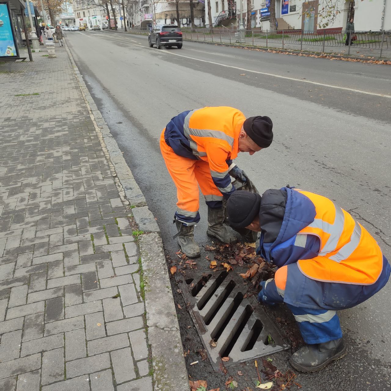 Очистка решеток и дождеприемников от листьев и грунта после дождя на ул.Ревякина, ул.Ленина, пр.Генерала Петрова, ул.Сенявина , ул.Адмирала Октябрьского, ул.Очаковцев, ул. Гоголя