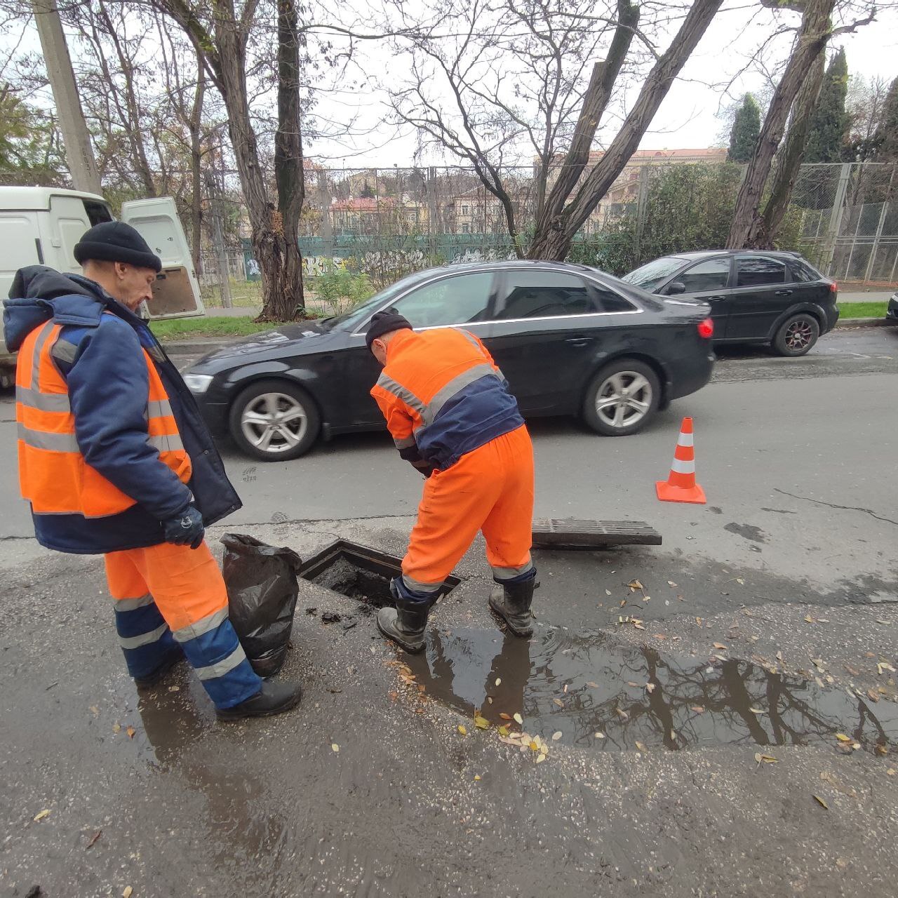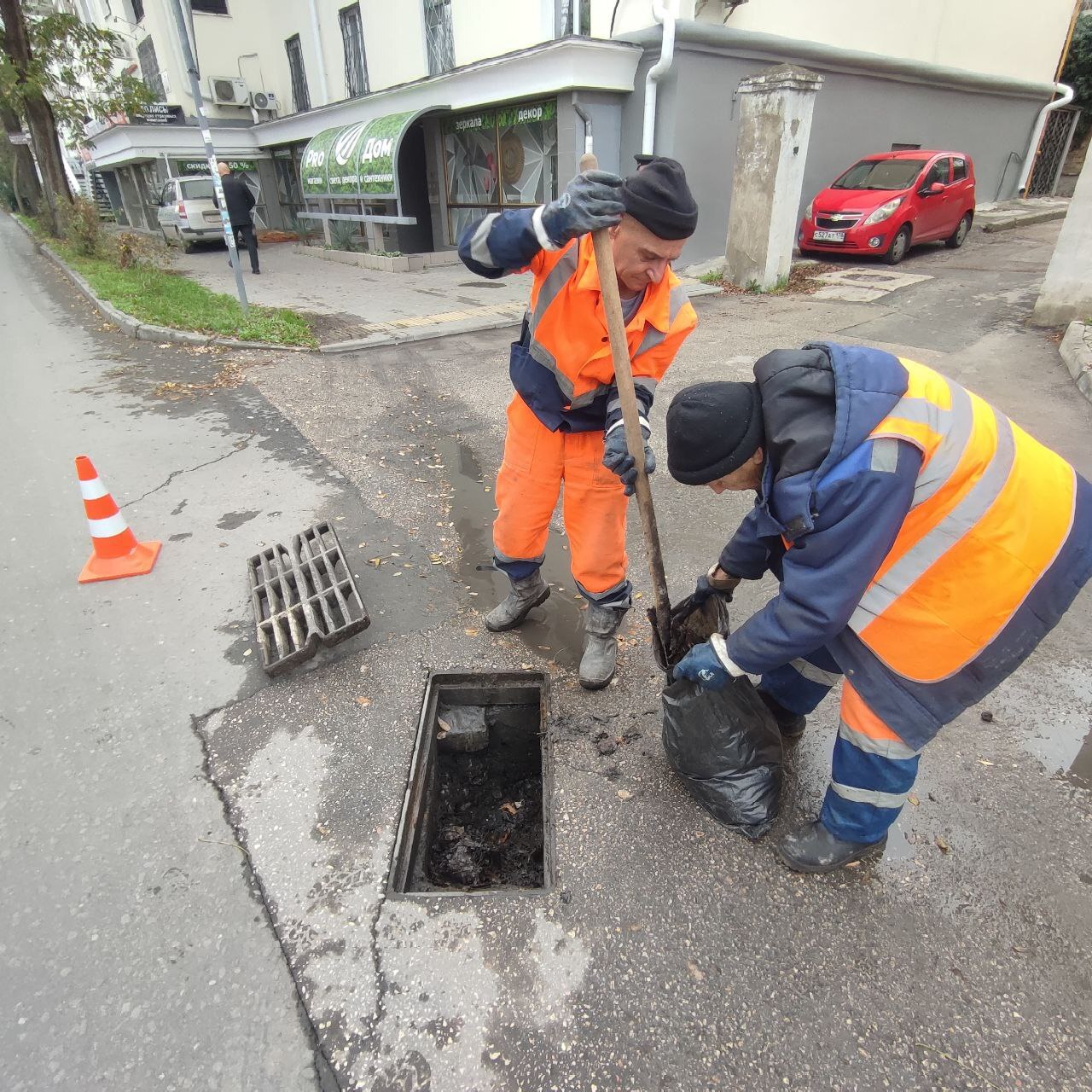 Водоканал: Рабочие моменты. Очистка решеток и дождеприемников от листьев и грунта после дождя на ул.Ревякина, ул.Ленина, пр.Генерала Петрова, ул.Сенявина , ул.Адмирала Октябрьского, ул.Очаковцев, ул. Гоголя Фото Николая...