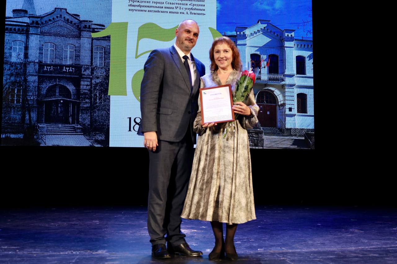 От имени Губернатора Севастополя Михаила Владимировича Развожаева и от всех работников Департамента образования и науки поздравил коллектив школы и вручил педагогам заслуженные награды.