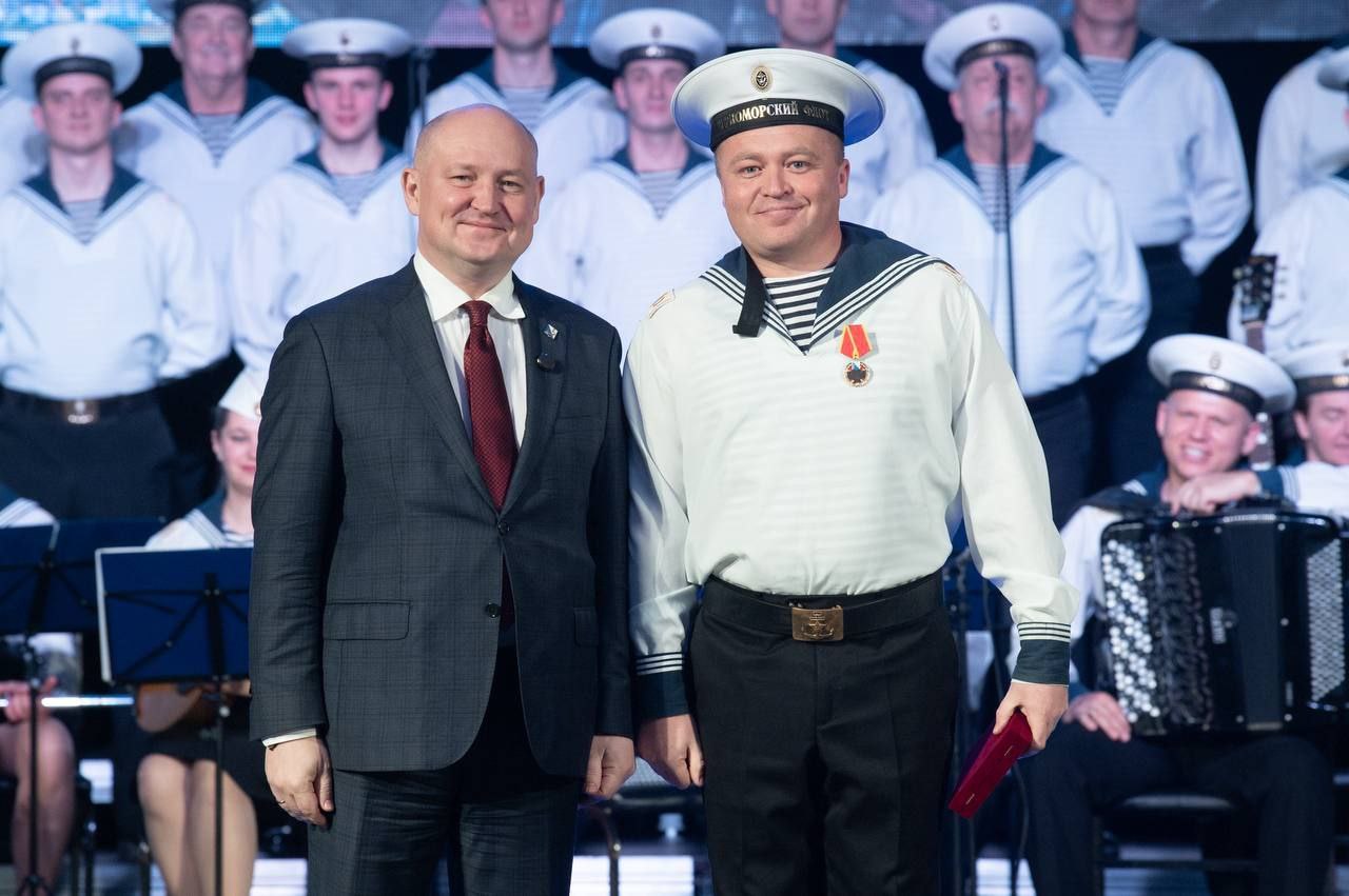 «Ансамбль песни и пляски Черноморского флота редко бывает в полном составе в Севастополе из-за высокой востребованности. Я воспользовался возможностью и вручил звания «Заслуженный артист города Севастополя» восьми артистам», — сообщил губернатор Севастополя Михаил Развожаев.