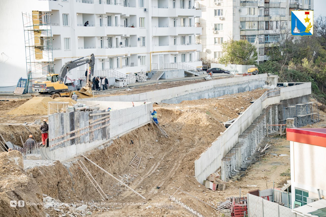 Сейчас возле дома № 29-А строят каскадные подпорные стены, чтобы укрепить сложный рельеф территории. Всего установят более 300 метров таких конструкций.
