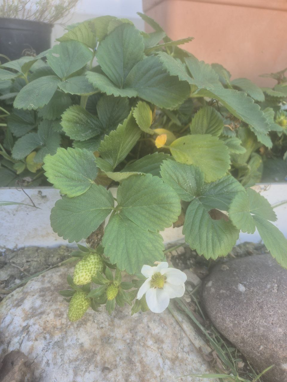 Фото: цветущей и зреющей декабрьской клубники от Веры