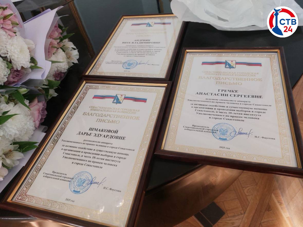 Церемония приурочена к 10-летию института Уполномоченного по правам человека в Севастополе. Благодарственные письма, почётные грамоты и благодарности вручают от Губернатора Севастополя, Правительства Севастополя, Законодательного Собрания, Севастопольского горизбиркома.
