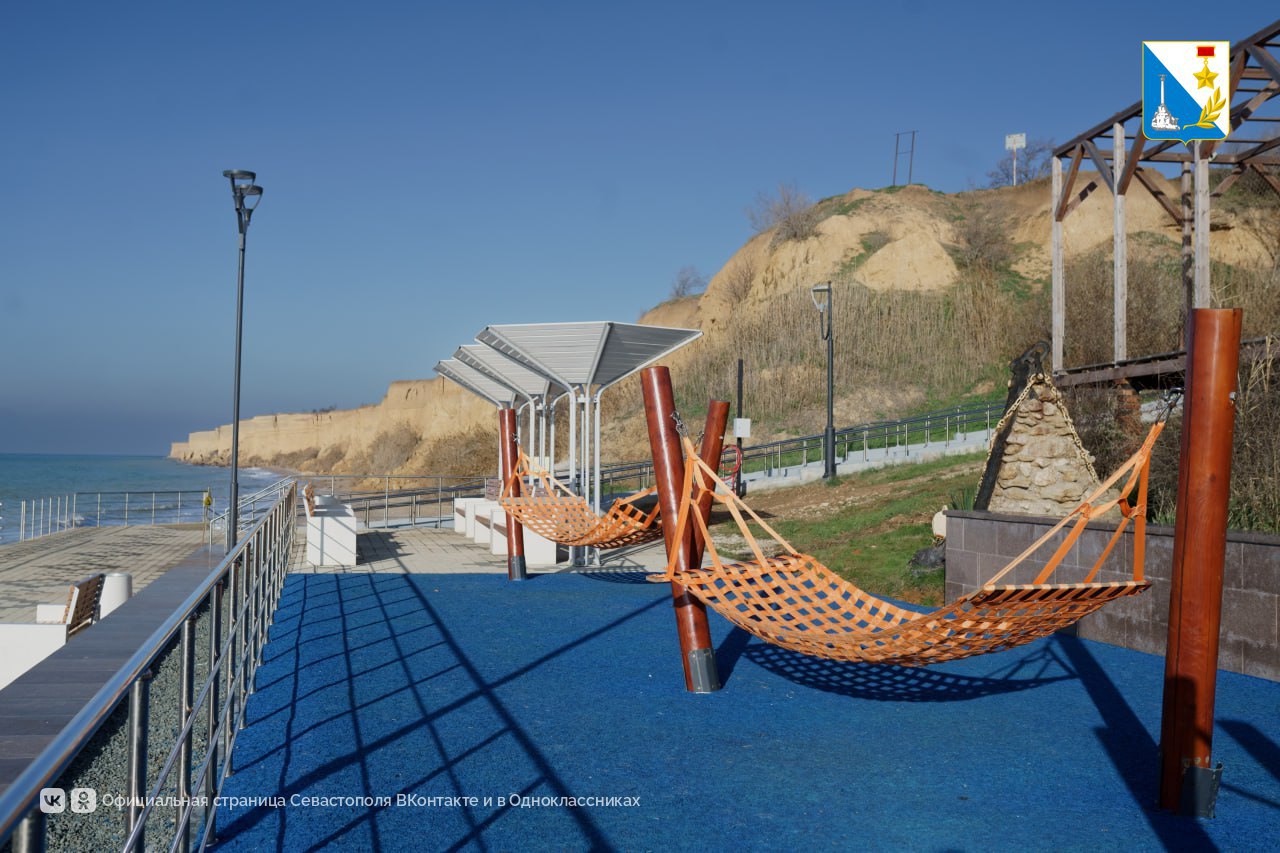 Теперь пространство полностью обновили: установили новое освещение, удобные скамейки, навесы и сделали пандус к морю, смонтировали спортивную зону и пространство для отдыха с гамаками.