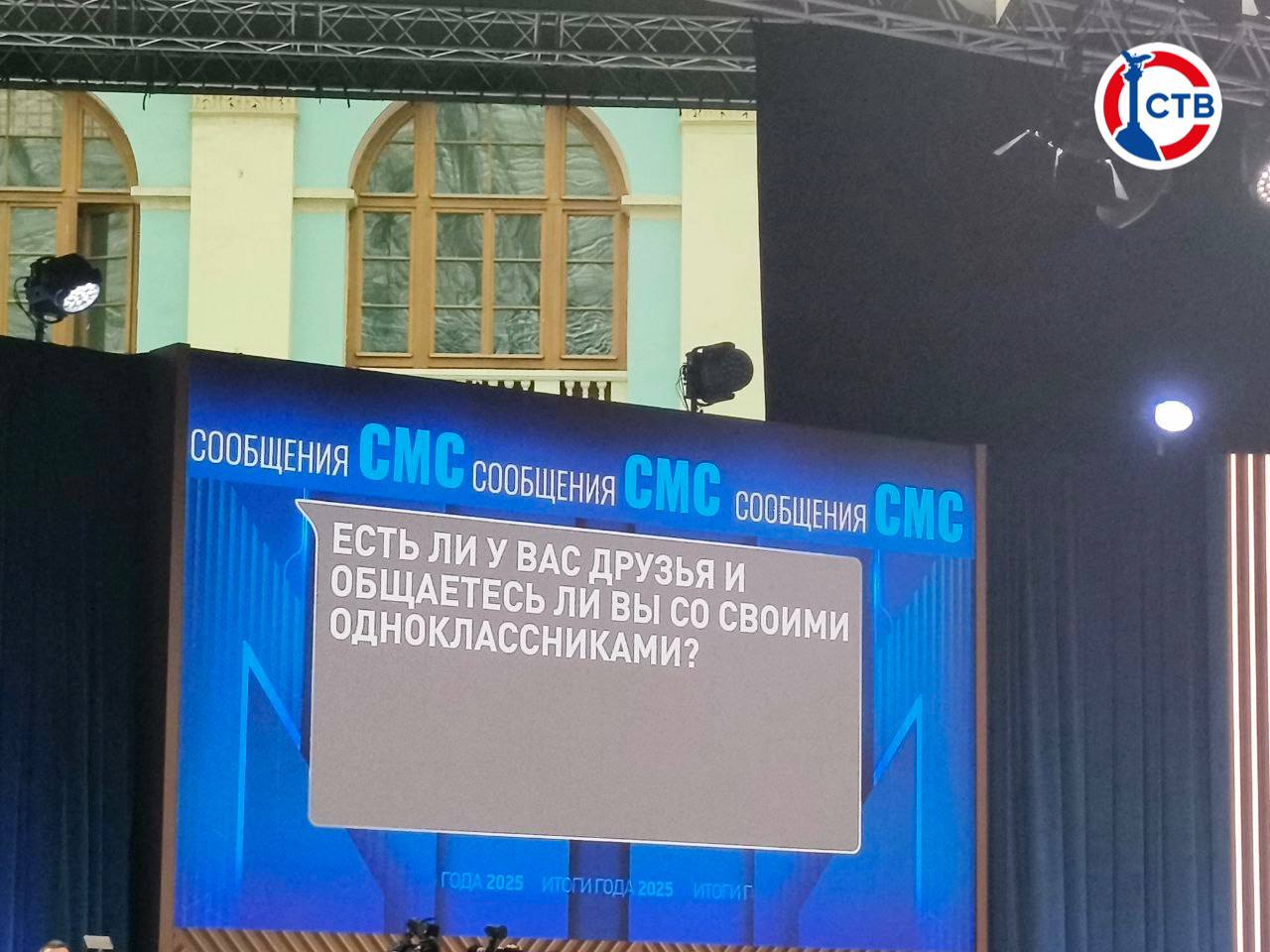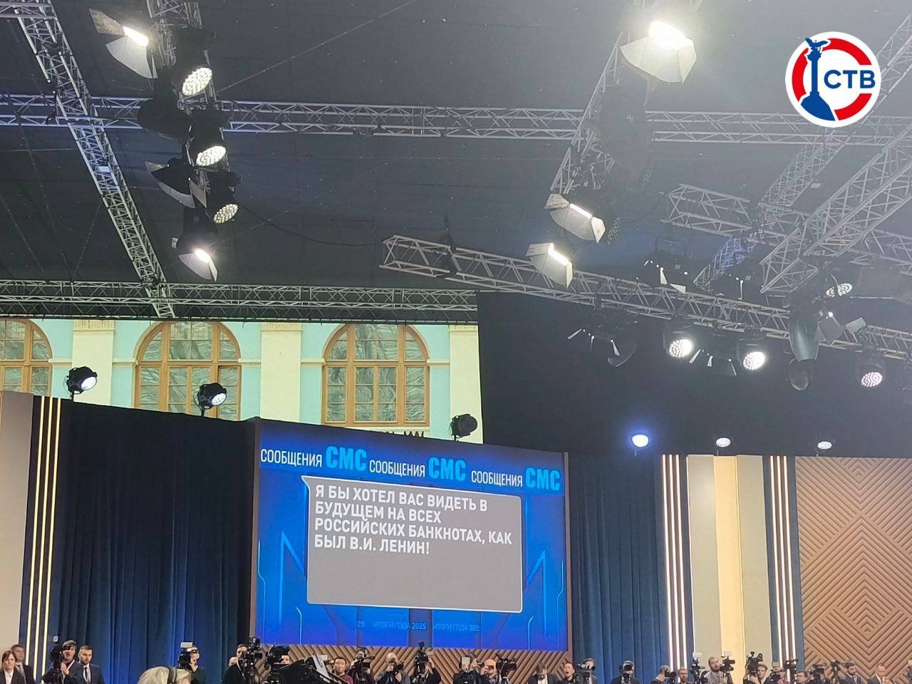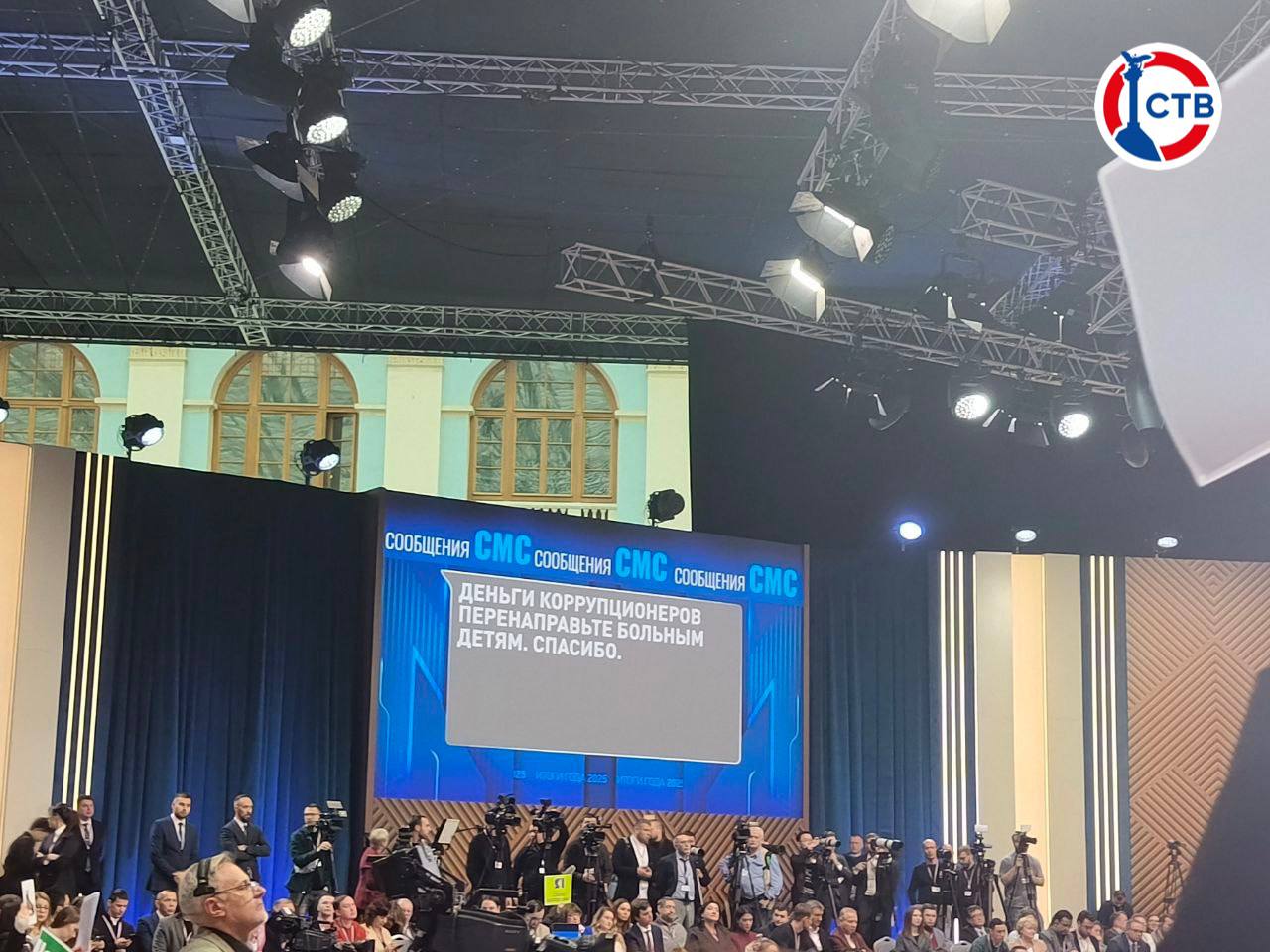 На главный экран в зале, где проводится Прямая линия с Президентом России, выводятся сообщения, поступающие от граждан страны.