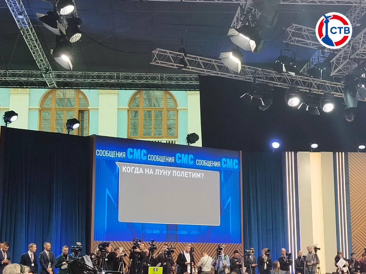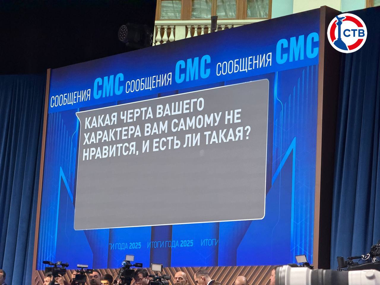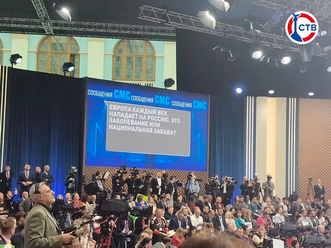 На главный экран в зале, где проводится Прямая линия с Президентом России, выводятся сообщения, поступающие от граждан страны.