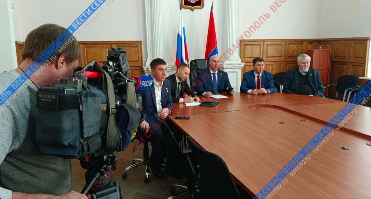 Спикер и депутаты Законодательного собрания Севастополя слушают Владимира Путина то из убежища, то в зале заседаний из-за воздушной тревоги