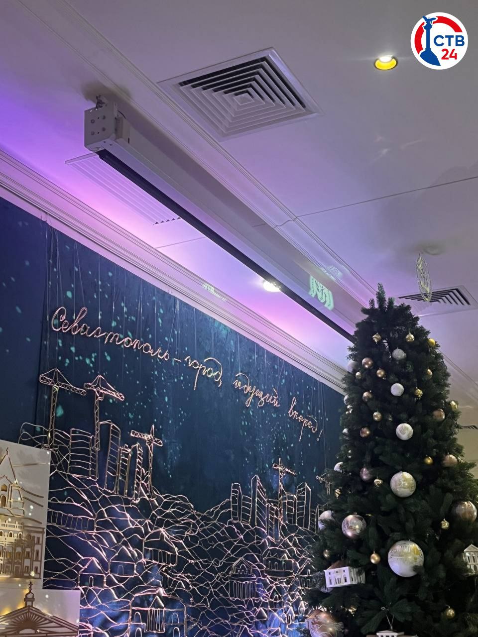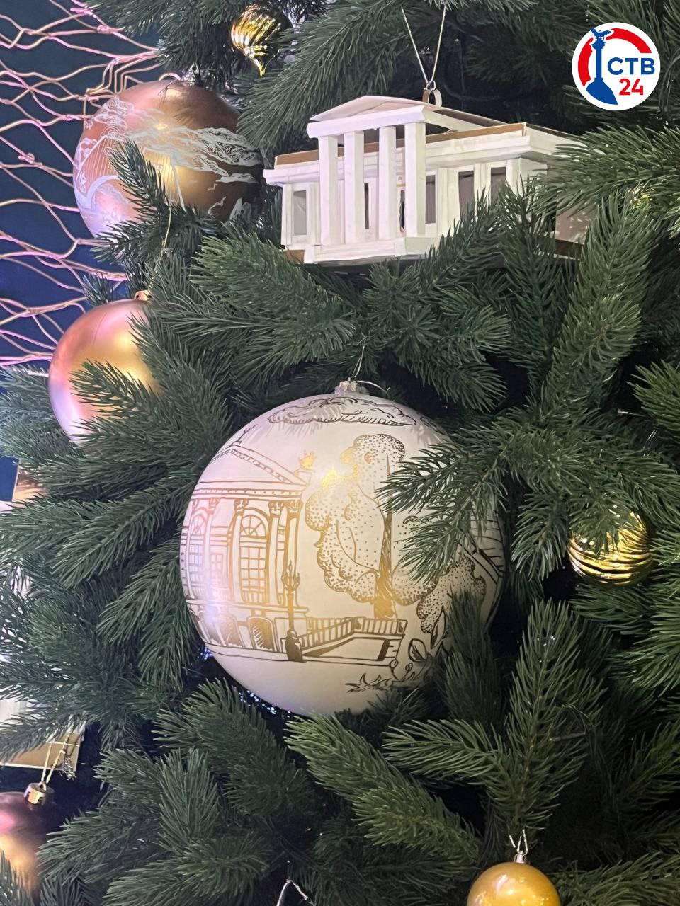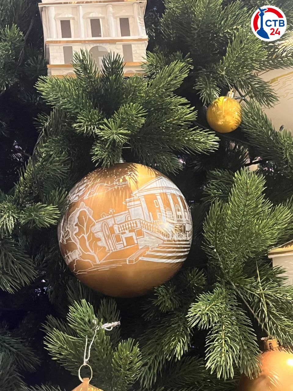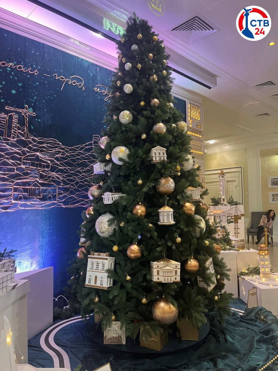 Ёлку украсили шарами, расписанными вручную. Она стоит напротив панно с очертаниями города. Рядом разместили макеты известных севастопольских зданий — как символы его прошлого и будущего.