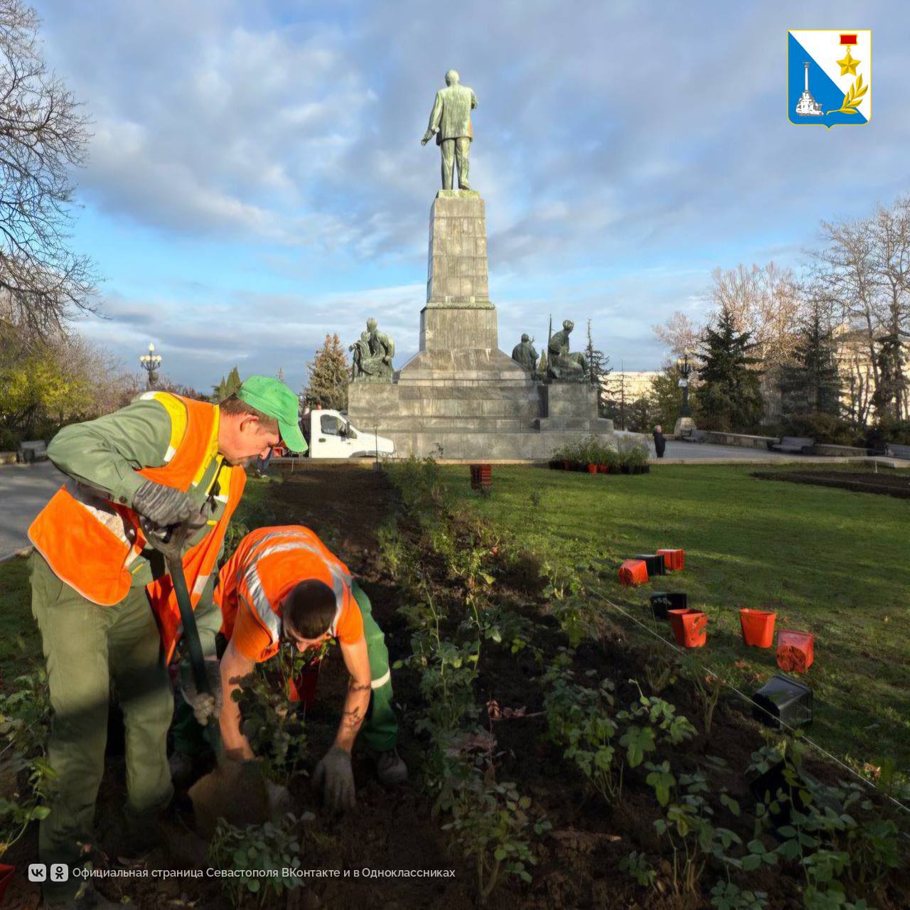 Срециалисты «Парков и скверов» высадили розы у Владимирского собора.