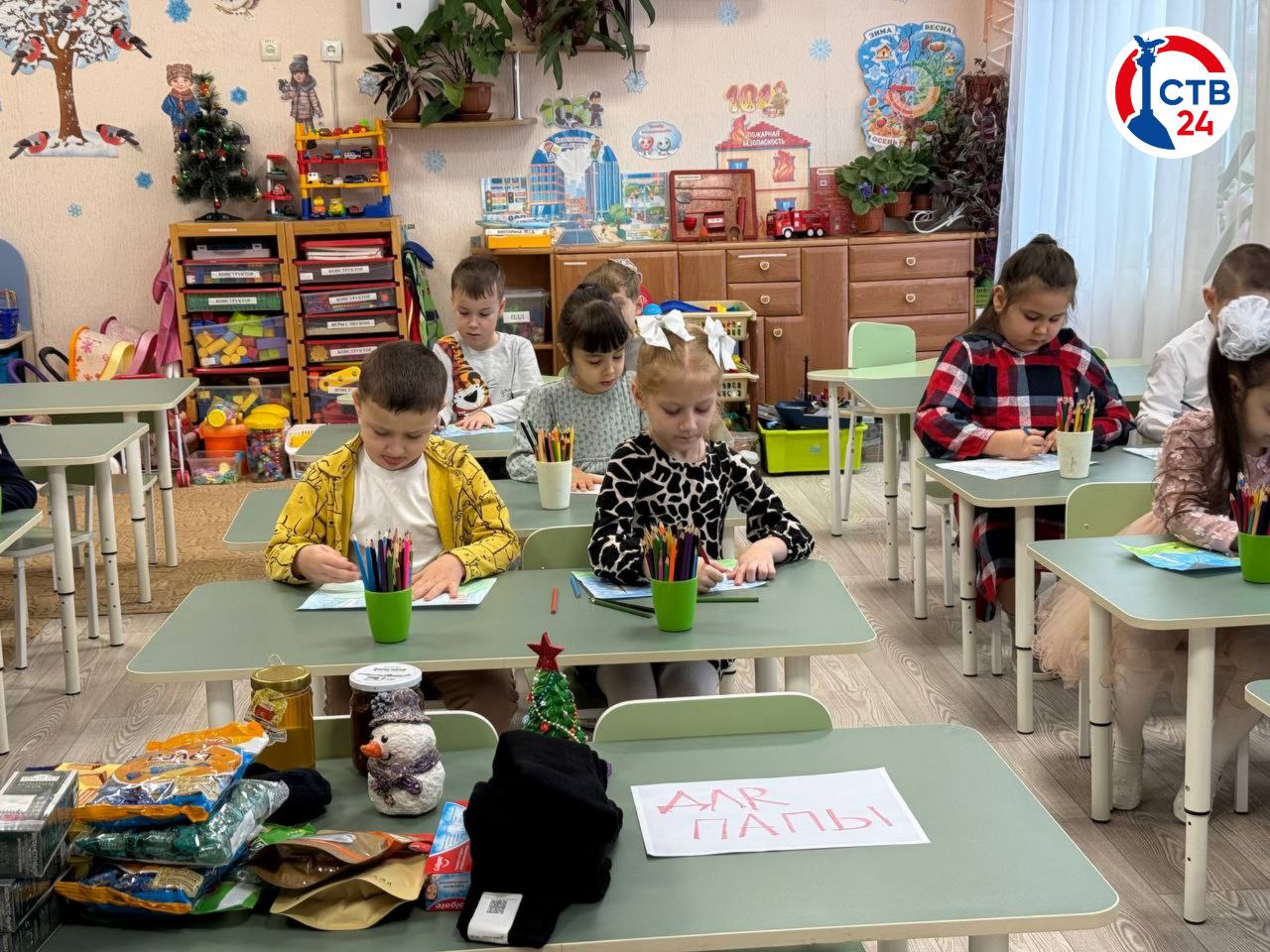 Она проходит впервые и в ней уже участвуют более 15 тысяч детей от 3 до 7 лет. Ребята вместе с родителями собирают коробки с рисунками, сувенирами и сладостями для наших защитников.