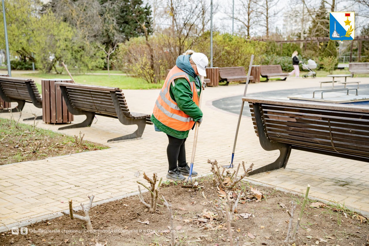 Специалисты также работают на проспекте Генерала Острякова, на кольцевой клумбе Ревякина-Мельника и в парках Победы, Анны Ахматовой и Учкуевке.