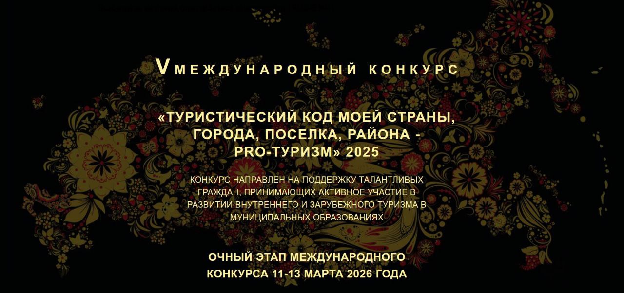 В рамках Национального проекта "Туризм и индустрия гостеприимства" проходит V Международный конкурс "Туристический код моей страны, города, поселка, района - PRO-туризм"!