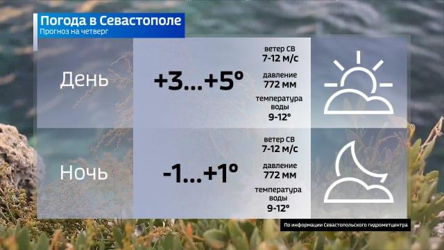 Погода на 25 декабря:• переменная облачность• температура воздуха: от -6° до +3°• атмосферное давление: 770 мм рт.ст.• ветер северо-восточный до 4 м/сЛегендарный 24 | Севастополь