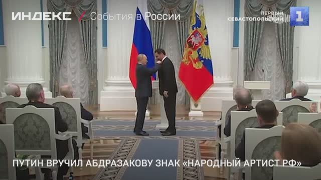 Путин вручил нагрудный знак «Народный артист Российской Федерации» худруку Севастопольского театра оперы и балета Ильдару Абдразакову.