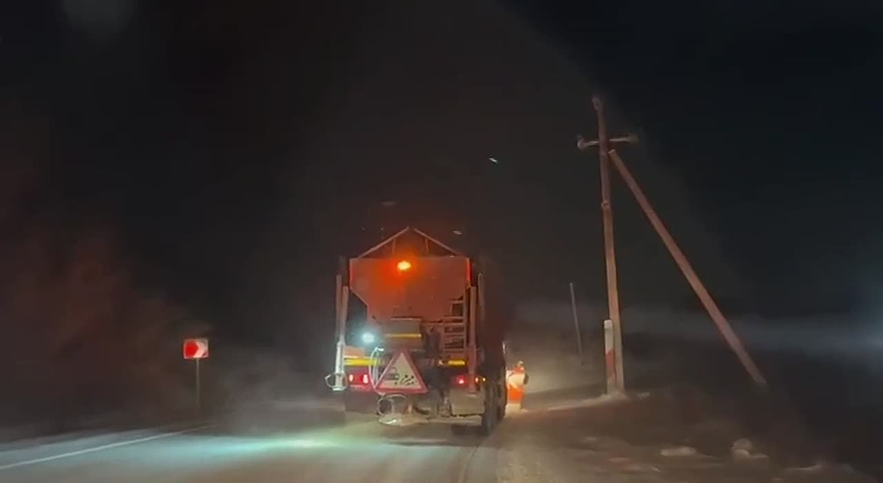 За ночь дорожниками израсходовано 430 тонн противогололедного материала. Задействовано 15 единиц техники.