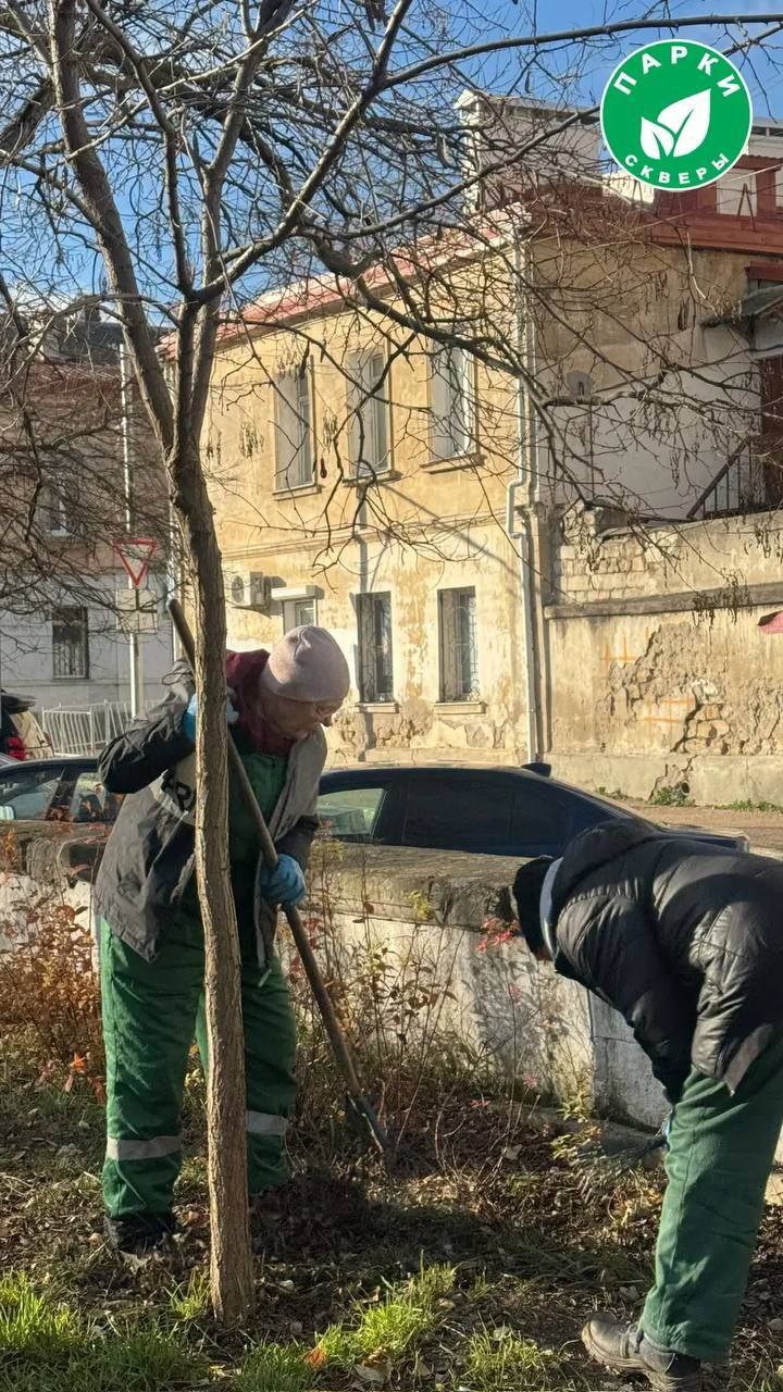 В сквере имени Бузина специалисты завершили уборку в рамках сезонной подготовки к зиме