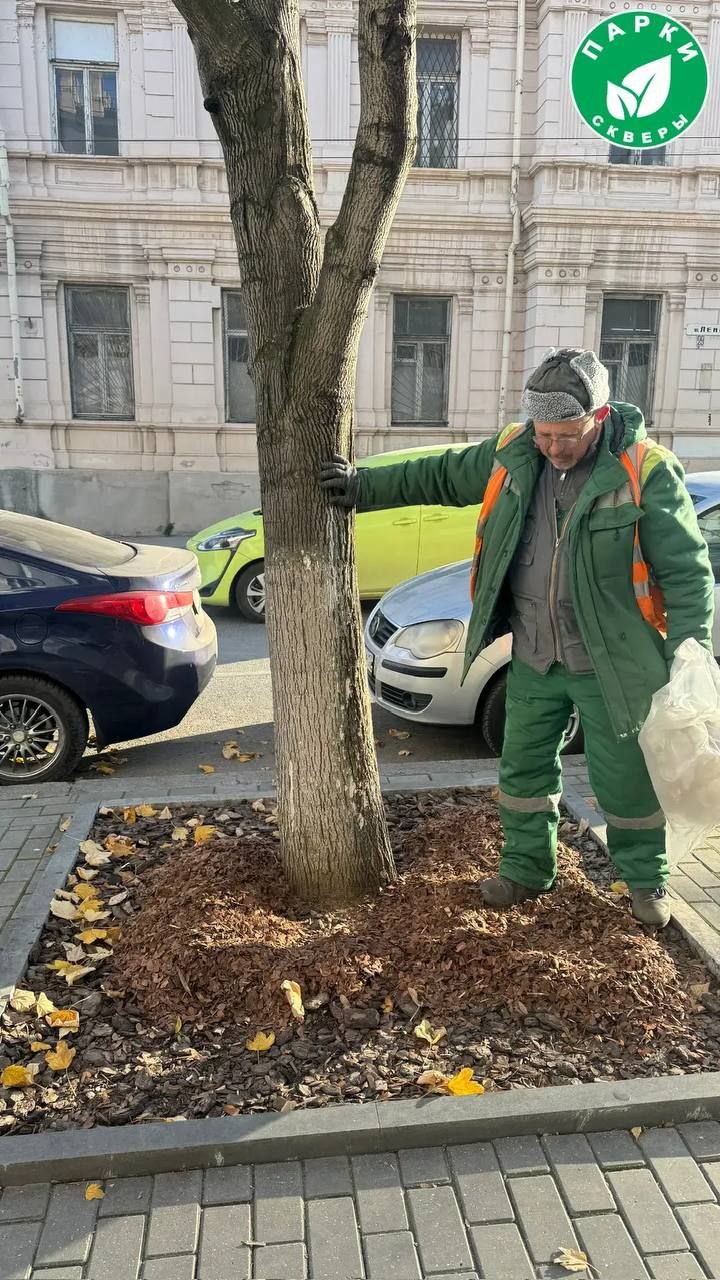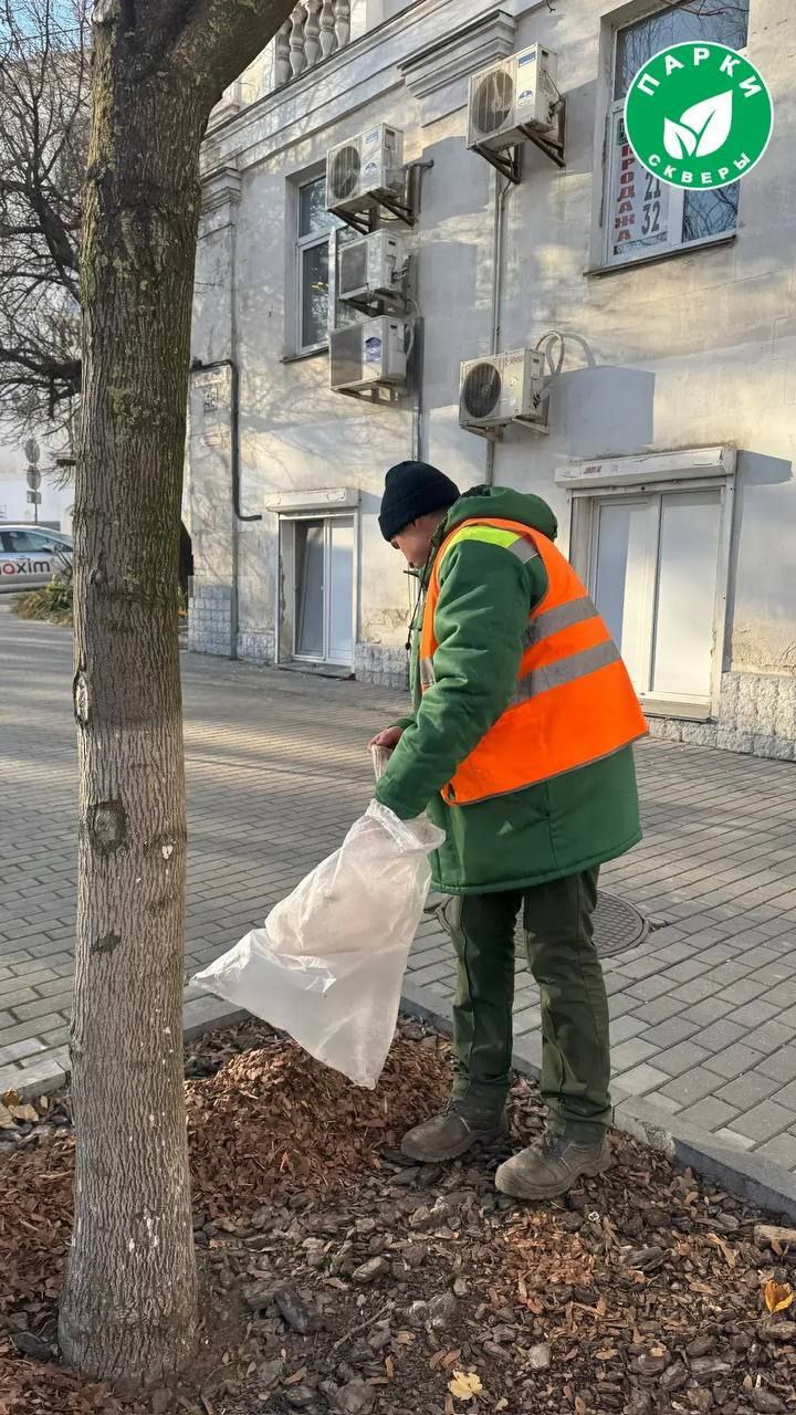 Специалисты «Парков и скверов» обновили приствольные круги деревьев на улице Ленина