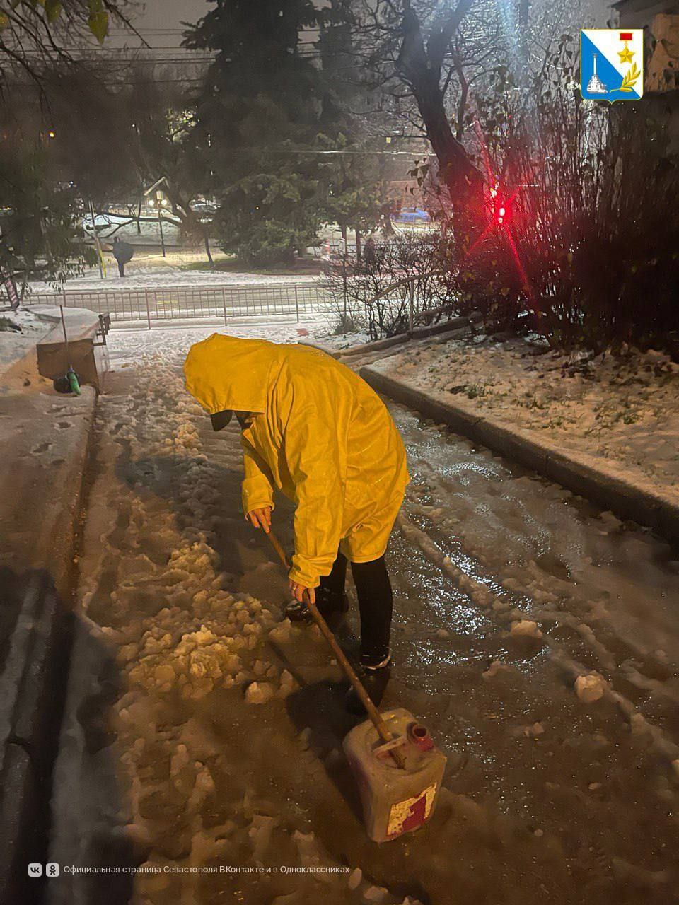 Сотрудники УК с раннего утра обрабатывают придомовые территории: чистят и посыпают пешеходные дорожки противогололедной смесью.