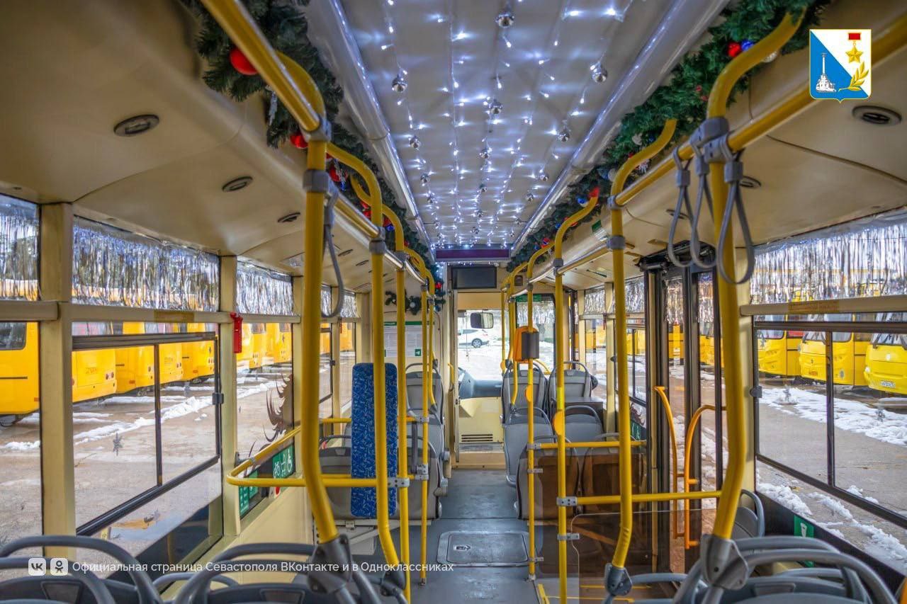 Транспорт ярко украсили и снаружи, и внутри. Вместо водителя и кондуктора пассажиров встречают Дед Мороз и Снегурочка. Они дарят людям улыбки, добрые пожелания и праздничное настроение.