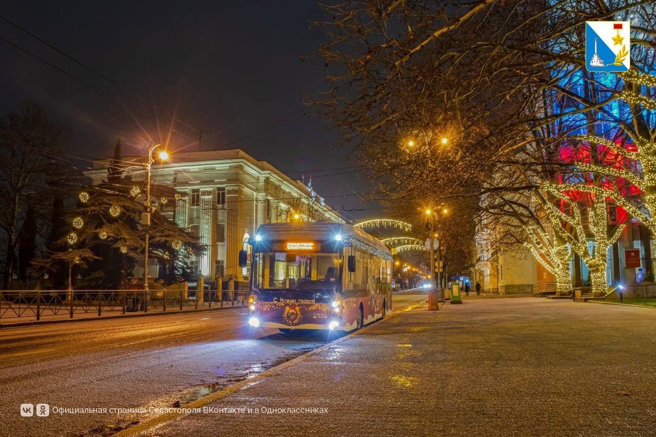 В канун праздника «Севэлектроавтотранс» запустил новогодний троллейбус